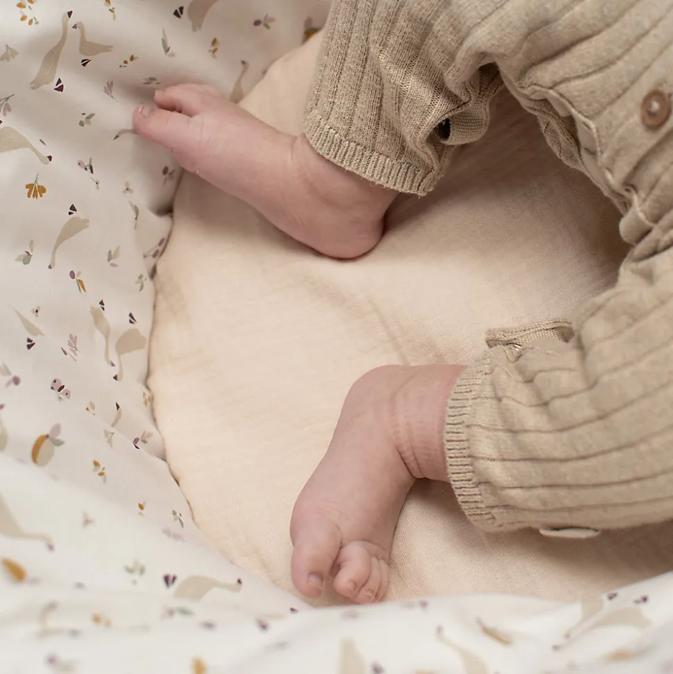 L’oreiller plat Sidonia, 100% made in France !Doux, léger et confortable, l’oreiller plat Sidonia apporte un grand confort à votre enfant pour lui assurer une bonne nuit de sommeil. Véritable tendance textile pour les enfants, l’oreiller prêt à dormir facilitera votre quotidien de parents, un procédé garantissant durabilité et résistance. Adapté à la morphologie des tout-petits, ce coussin est une invitation au repos tout en douceur.L’oreiller plat Sidonia offrira à votre enfant un sommeil optimal et confortable, essentiel pour veiller à son bon développement. Le remplissage est cousu dans la literie, pouvant donc être laver en machine sans endommager son aspect soyeux. Un véritable gain de temps pour les parents !Un joli design raffiné de la Collection Sidonia aux adorables oies, baies et fleurs à l’esprit minimaliste. Fabriqué avec passion dans notre atelier en France, réalisé minutieusement à la main par notre équipe.Pour en savoir plus sur l’oreiller plat Sidonia en coton et gaze de coton, 100% made in France :• Un linge de lit facile au quotidien, léger, confortable et nomade : emporter votre oreiller partout où vous le souhaitez.• Une face en coton certifié et une face en gaze de coton / Garnissage en fibres creuses siliconnées certifiées • Circuit court : conception et fabrication dans les ateliers Sevira Kids en France, à Compiègne