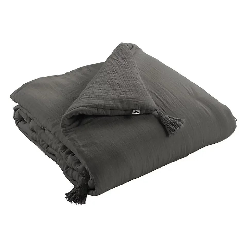 Chemin de Lit 90x200cm Capitonné Gaze de Coton Granit Ourea.Un indémodable pour prévenir le froid et habiller élégamment votre lit… mais aussi vos banquettes et canapés ! Une conception en double gaze de coton, légère, fluide et confortable. Une matière qui gagne en souplesse et en douceur au fil des lavages. ment froissée : pas besoin de repasser !Fabrication 100% Coton, densité 125g/m2. Garnissage 100% Polyester, densité 300 g/m2. Capitonnage léger. Finition avec pompon aux 4 coins. Produit certifié OEKO-TEX.Dimensions : 90x200cm.Entretien facile : Lavage à 30°C avec couleurs similaires. Pas de sèche-linge.Salon, Art de la table, Chambre : la gamme de linge de maison Ourea a des solutions pour tout !