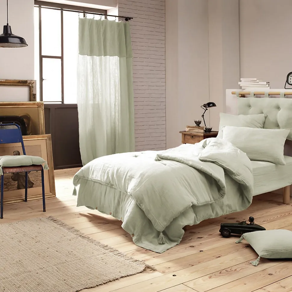 - Couvre-pied 150x150cm Capitonné Gaze de Coton Vert d’eau Ourea. Un indémodable pour prévenir le froid et habiller élégamment votre lit… mais aussi vos banquettes et canapés !