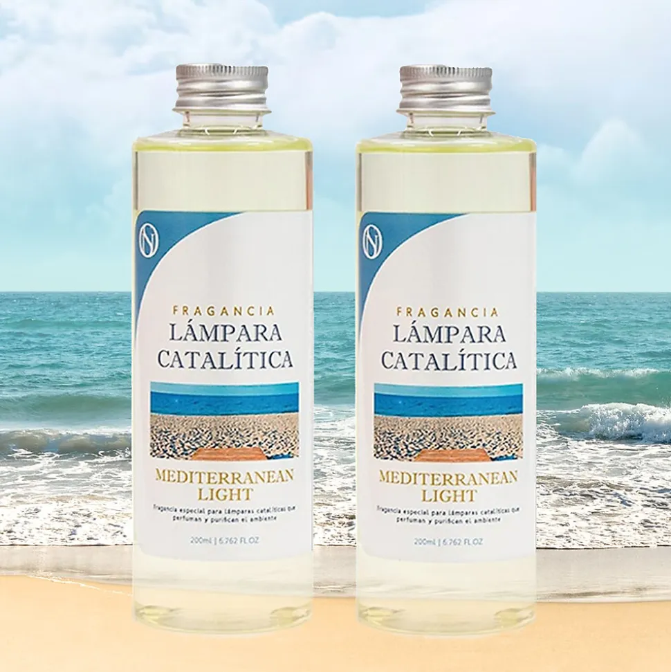 ❗ Pack Économie 2x Parfums pour Lampe Catalytique 500 ml : Arôme Mediterranean Light ❗Une lampe catalytique en plus de parfumer a la capacité de purifier l’air et d’éliminer les odeurs persistantes telles que le tabac, les odeurs de cuisine, l’humidité, les animaux domestiques… Le système de rafraîchissement d’air avec une lampe catalytique donne non seulement un environnement parfumé, mais améliore également la qualité de l’air et décore la pièce avec un design très élégant. Avec seulement 20-30 minutes d’utilisation, la pièce sera parfumée pendant 2 heures. Lorsque la pierre est allumée, elle chauffe et génère une catalyse, qui décompose les particules odorantes et purifie l’environnement.⁉️ Comment utiliser une lampe catalytique ?1. REMPLIR LA LAMPE DE PARFUM : Retirez le bouchon décoratif et le capuchon et remplissez la lampe aux 3/4 avec le parfum choisi.2. PLACER LA MÈCHE DANS LA LAMPE : Insérez la mèche éteinte dans la lampe et laissez-la imprégner de parfum pendant environ 15 minutes.3. ALLUMER LA MÈCHE : À l’aide d’un briquet ou d’allumettes, allumez la mèche et laissez la flamme allumée pendant 2 minutes, jusqu’à ce qu’elle se réduise.4. ÉTEINDRE LE BRÛLEUR EN SOUFFLANT : Une fois la flamme réduite, soufflez pour l’éteindre complètement et remettez le capuchon décoratif.5. FIXER LA TÊTE DÉCORATIVE : Une fois la flamme éteinte, placez la tête décorative (avec les trous) sur la lampe à catalyse pour diffuser le parfum. Il est recommandé de l’utiliser pendant 20 à 30 minutes.6. ÉTEINDRE LA LAMPE CATALYTIQUE : Pour éteindre complètement la lampe catalytique, retirez le capuchon décoratif et remettez le capuchon métallique fermé, ce qui arrête la combustion.