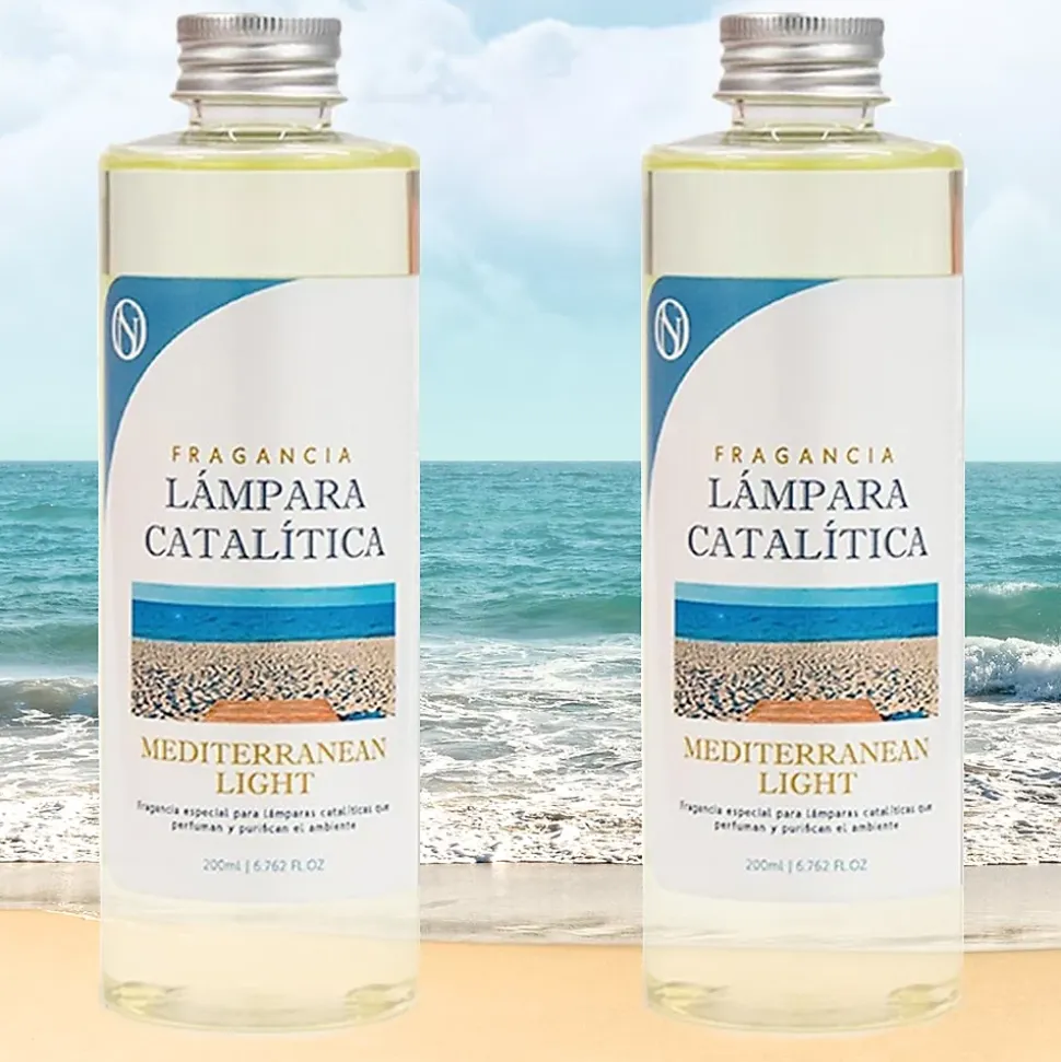 ❗ Pack Économie 2x Parfums pour Lampe Catalytique 200 ml : Arôme Mediterranean Light ❗Une lampe catalytique en plus de parfumer a la capacité de purifier l’air et d’éliminer les odeurs persistantes telles que le tabac, les odeurs de cuisine, l’humidité, les animaux domestiques… Le système de rafraîchissement d’air avec une lampe catalytique donne non seulement un environnement parfumé, mais améliore également la qualité de l’air et décore la pièce avec un design très élégant. Avec seulement 20-30 minutes d’utilisation, la pièce sera parfumée pendant 2 heures. Lorsque la pierre est allumée, elle chauffe et génère une catalyse, qui décompose les particules odorantes et purifie l’environnement.⁉️ Comment utiliser une lampe catalytique ?1. REMPLIR LA LAMPE DE PARFUM : Retirez le bouchon décoratif et le capuchon et remplissez la lampe aux 3/4 avec le parfum choisi.2. PLACER LA MÈCHE DANS LA LAMPE : Insérez la mèche éteinte dans la lampe et laissez-la imprégner de parfum pendant environ 15 minutes.3. ALLUMER LA MÈCHE : À l’aide d’un briquet ou d’allumettes, allumez la mèche et laissez la flamme allumée pendant 2 minutes, jusqu’à ce qu’elle se réduise.4. ÉTEINDRE LE BRÛLEUR EN SOUFFLANT : Une fois la flamme réduite, soufflez pour l’éteindre complètement et remettez le capuchon décoratif.5. FIXER LA TÊTE DÉCORATIVE : Une fois la flamme éteinte, placez la tête décorative (avec les trous) sur la lampe à catalyse pour diffuser le parfum. Il est recommandé de l’utiliser pendant 20 à 30 minutes.6. ÉTEINDRE LA LAMPE CATALYTIQUE : Pour éteindre complètement la lampe catalytique, retirez le capuchon décoratif et remettez le capuchon métallique fermé, ce qui arrête la combustion.
