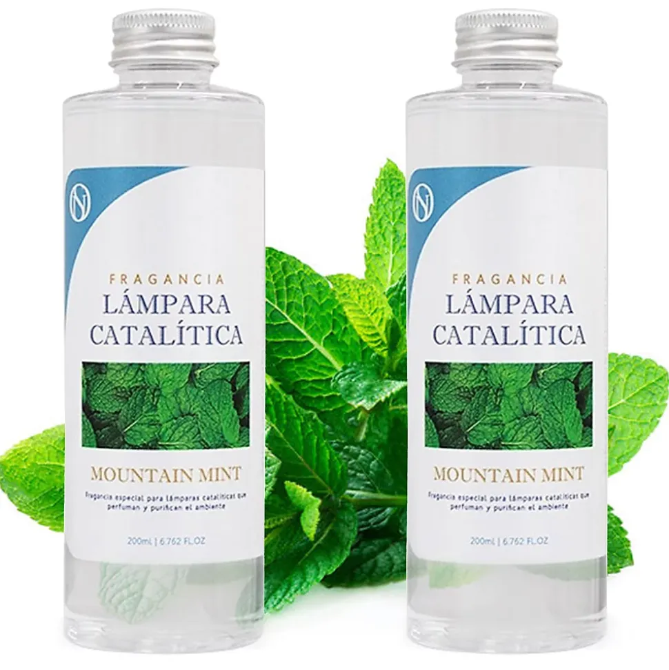 ❗ Pack Économie 2x Parfums pour Lampe Catalytique 200 ml : Arôme Mountain Mint ❗Une lampe catalytique en plus de parfumer a la capacité de purifier l’air et d’éliminer les odeurs persistantes telles que le tabac, les odeurs de cuisine, l’humidité, les animaux domestiques… Le système de rafraîchissement d’air avec une lampe catalytique donne non seulement un environnement parfumé, mais améliore également la qualité de l’air et décore la pièce avec un design très élégant. Avec seulement 20-30 minutes d’utilisation, la pièce sera parfumée pendant 2 heures. Lorsque la pierre est allumée, elle chauffe et génère une catalyse, qui décompose les particules odorantes et purifie l’environnement.⁉️ Comment utiliser une lampe catalytique ?1. REMPLIR LA LAMPE DE PARFUM : Retirez le bouchon décoratif et le capuchon et remplissez la lampe aux 3/4 avec le parfum choisi.2. PLACER LA MÈCHE DANS LA LAMPE : Insérez la mèche éteinte dans la lampe et laissez-la imprégner de parfum pendant environ 15 minutes.3. ALLUMER LA MÈCHE : À l’aide d’un briquet ou d’allumettes, allumez la mèche et laissez la flamme allumée pendant 2 minutes, jusqu’à ce qu’elle se réduise.4. ÉTEINDRE LE BRÛLEUR EN SOUFFLANT : Une fois la flamme réduite, soufflez pour l’éteindre complètement et remettez le capuchon décoratif.5. FIXER LA TÊTE DÉCORATIVE : Une fois la flamme éteinte, placez la tête décorative (avec les trous) sur la lampe à catalyse pour diffuser le parfum. Il est recommandé de l’utiliser pendant 20 à 30 minutes.6. ÉTEINDRE LA LAMPE CATALYTIQUE : Pour éteindre complètement la lampe catalytique, retirez le capuchon décoratif et remettez le capuchon métallique fermé, ce qui arrête la combustion.