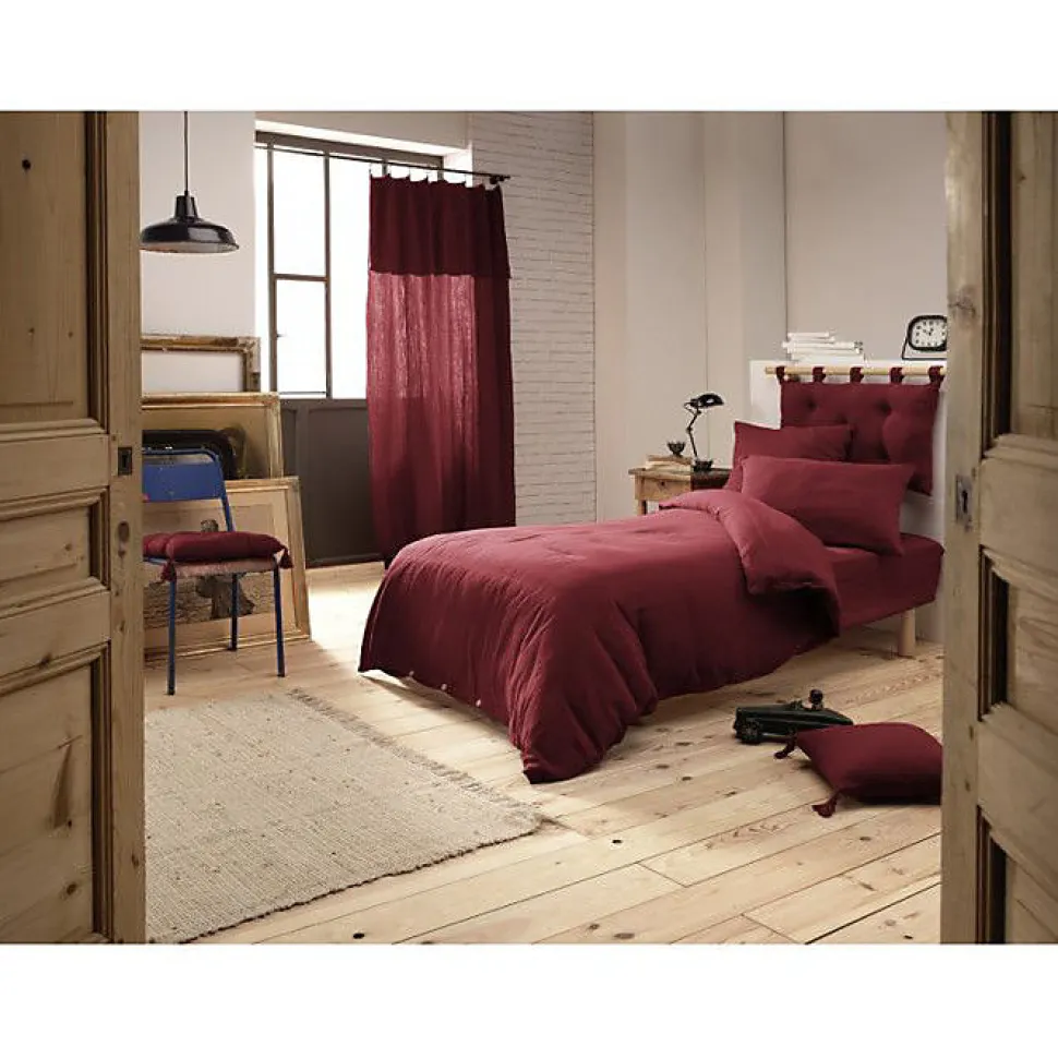 Pack housse de couette "Gaïa" toutes dimensions "Gaze de Coton" - Gaïa Lie de Vin - Pack 3 Pièces pour lit 90 x 190 cm (1 Housse d