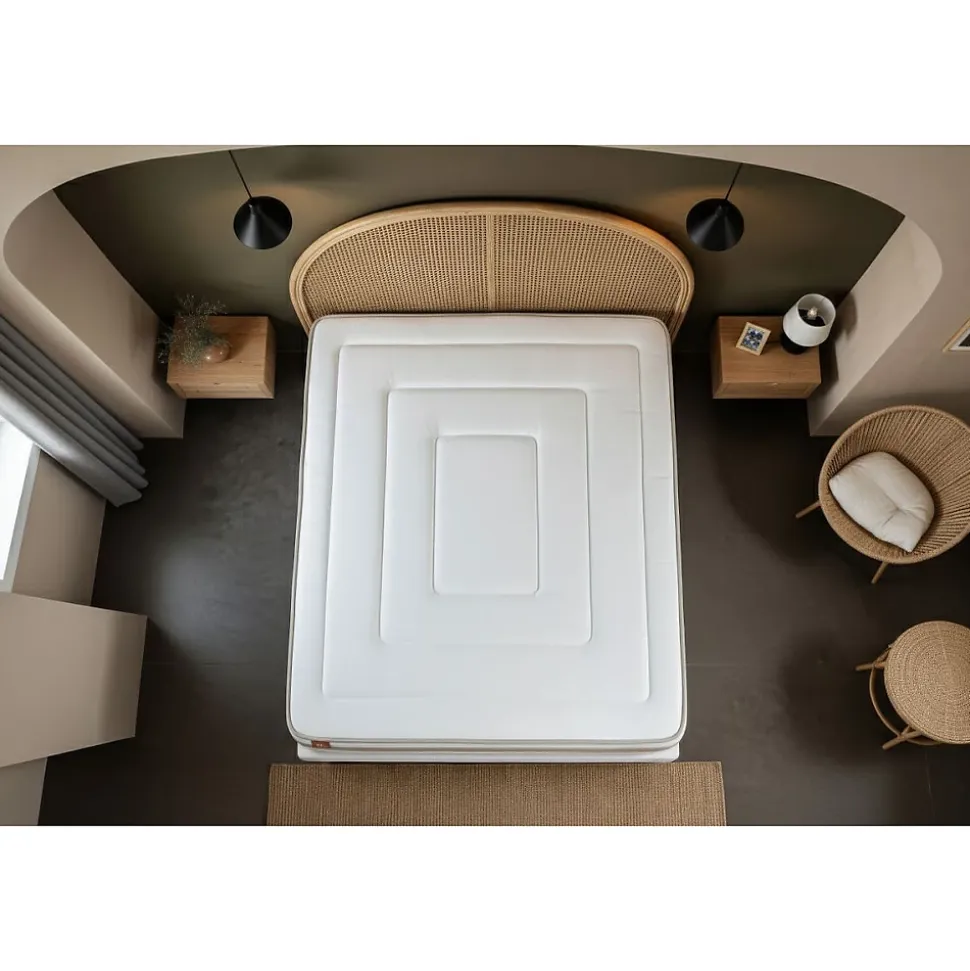 À toi qui peux dormir douze heures d’affilée sans jamais te réveiller… À toi qui troques régulièrement ton café contre quelques précieuses minutes de gagnées… À toi, l’oiseau de nuit, qui retrouves au petit matin ton lit chéri… chez Marmottes & Co, nous avons le nid douillet qu’il te faut. Nous avons developpé une gamme de produits couvrant toutes les sensations de confort recherchées grace à des technologies éprouvées associées à des matières naturelles. Tous nos matelas, sommiers et accessoires sont fabriqués au Portugal, dans la région du Val d’Ave, région reconnue pour son savoir-faire textile transmis de générations en générations. Nous travaillons en étroite collaboration avec nos fournisseurs à chaque étape, de la conception à la fabrication de nos produits, afin qu’ils soient conformes à nos exigences et qu’ils comblent vos attentes. Tous nos produits sont conçus, contrôlés, testés avec la plus grande rigueur. Ils portent le label Oeko-Tex qui garantit l’absence de substances nocives pour la peau.Vivez une expérience inédite en vous allongeant sur ce coutil en BAMBOU, naturellement doux et ultra-absorbant. Le matelas RAFFINÉ de Marmottes&Co offre un accueil enveloppant et un confort équilibré grâce à une double technologie de ressorts ensachés et de mousse à mémoire de forme biologique. Fermez les yeux, la sérénité vous gagne…> Epaisseur 26 cm > Soutien équilibré composé d’une âme en ressorts ensachés et de mousse biologique> Nombre de ressorts ensachés : 290 pour 80×190, 310 pour 80×200, 348 pour 90×190, 372 pour 90×200, 493 pour 120×190, 527 pour 120×200, 609 pour 140×190, 651 pour 140×200, 744 pour 160×200, 806 pour 180×200, 961 pour 200×200> Accueil Enveloppant : Mousse à mémoire de forme bio de 2 cm > Fibres 60% de bambou et 40% de polyester recyclés 300G/m2 de 2 cm > Plate-Bande 3D micro-aérée pour optimiser l’aération du matelas 100% polyester> Coutil en fibre naturelle ultra absorbant et > Epaisseur