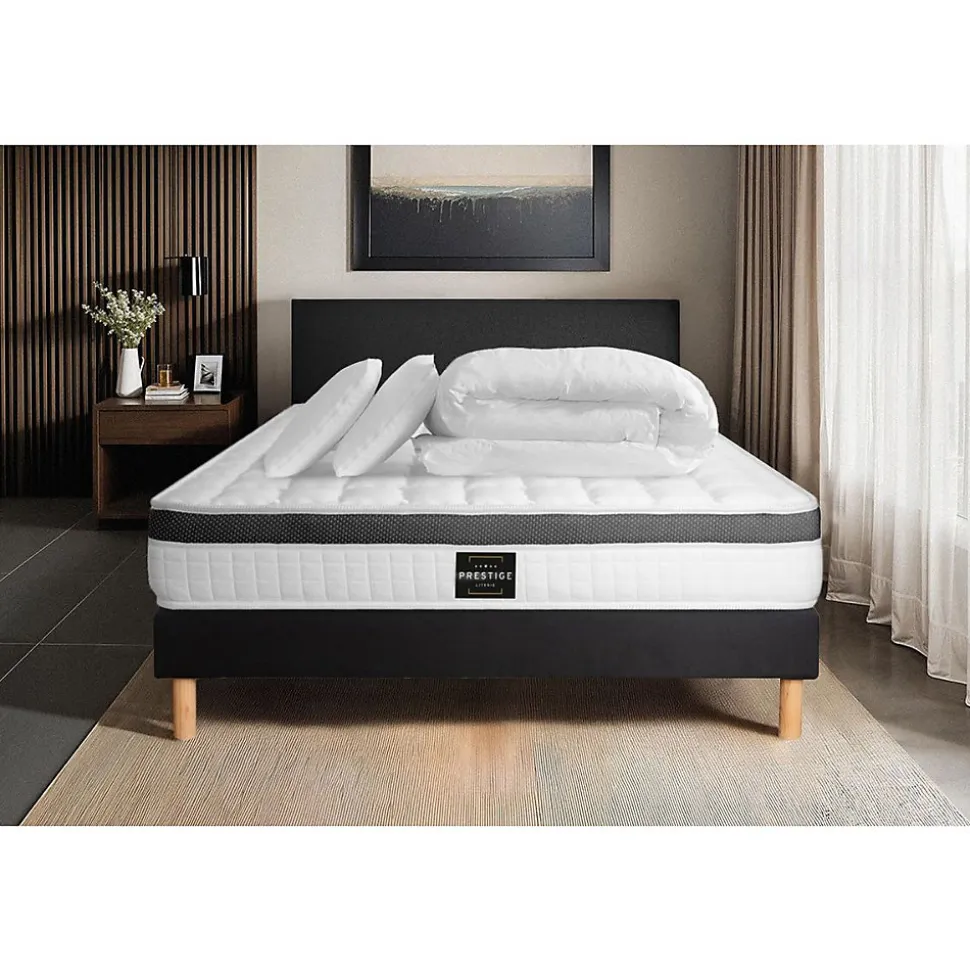 Pack sommier tapissier matelas Mémoire de forme avec couette et oreillers