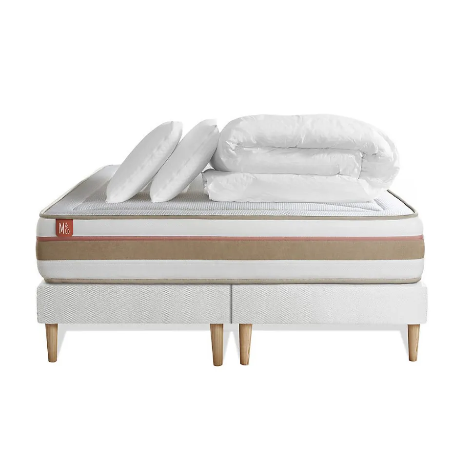 Pack sommier tapissier matelas Ressorts ensachés et mémoire de forme avec couette et oreillers