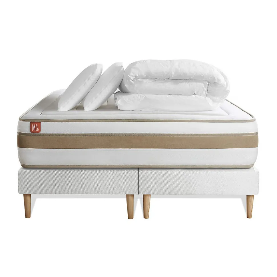 À toi qui peux dormir douze heures d’affilée sans jamais te réveiller… À toi qui troques régulièrement ton café contre quelques précieuses minutes de gagnées… À toi, l’oiseau de nuit, qui retrouves au petit matin ton lit chéri… chez Marmottes & Co, nous avons le nid douillet qu’il te faut. Nous avons developpé une gamme de produits couvrant toutes les sensations de confort recherchées grace à des technologies éprouvées associées à des matières naturelles. Tous nos matelas, sommiers et accessoires sont fabriqués au Portugal, dans la région du Val d’Ave, région reconnue pour son savoir-faire textile transmis de générations en générations. Nous travaillons en étroite collaboration avec nos fournisseurs à chaque étape, de la conception à la fabrication de nos produits, afin qu’ils soient conformes à nos exigences et qu’ils comblent vos attentes. Tous nos produits sont conçus, contrôlés, testés avec la plus grande rigueur. Ils portent le label Oeko-Tex qui garantit l’absence de substances nocives pour la peau.Vivez une expérience inédite en vous allongeant sur ce coutil en BAMBOU, naturellement doux et ultra-absorbant. Le matelas RAFFINÉ de Marmottes&Co offre un accueil enveloppant et un confort équilibré grâce à une double technologie de ressorts ensachés et de mousse à mémoire de forme biologique. Fermez les yeux, la sérénité vous gagne…> Epaisseur 26 cm > Soutien équilibré composé d’une âme en ressorts ensachés et de mousse biologique> Nombre de ressorts ensachés : 290 pour 80×190, 310 pour 80×200, 348 pour 90×190, 372 pour 90×200, 493 pour 120×190, 527 pour 120×200, 609 pour 140×190, 651 pour 140×200, 744 pour 160×200, 806 pour 180×200, 961 pour 200×200> Accueil Enveloppant : Mousse à mémoire de forme bio de 2 cm > Fibres 60% de bambou et 40% de polyester recyclés 300G/m2 de 2 cm > Plate-Bande 3D micro-aérée pour optimiser l’aération du matelas 100% polyester> Coutil en fibre naturelle ultra absorbant et > Epaisseur