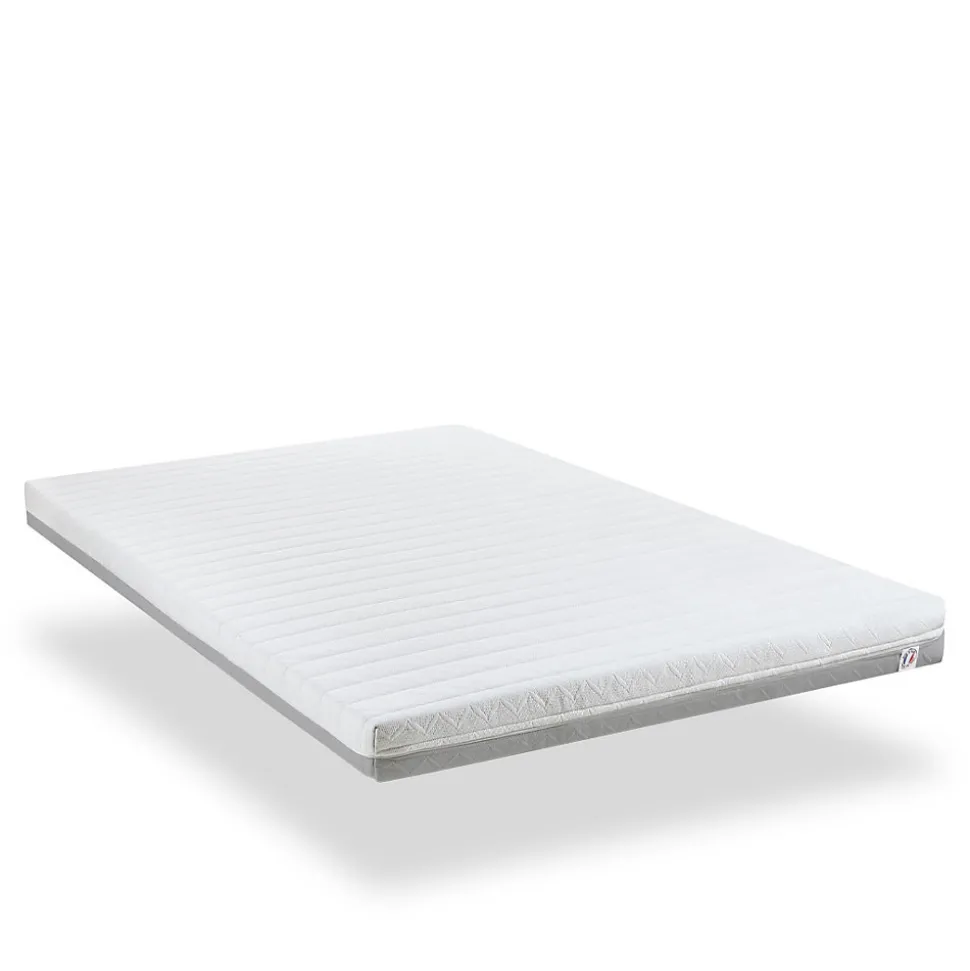 MatelasCARACTERISTIQUES :Dimensions disponibles (cm) : 90×190 – 90×200 – 140×190 – 140×200 – 160×200 – 180x200Epaisseur : 12 cmTechnologie : Mousse profiléeAccueil : MediumSoutien : FermeIndépendance de couchage : 3/5Aération : 5/5Fabrication : FrançaiseDéhoussable : OuiLivré rouléGaranti 7 ansCOMPOSITION :Âme intérieure (CertiPUR) : 12 cm de mousse polyéther dentelée de 23 kg/m³Coutil (Oeko-Tex) : Tissu stretch 100% polyester garni de 250 gr/m² de fibres polyesterPOINTS FORTS :Soutien constant et adapté à chaque partie du corps (mousse Haute Densité profilée)Hygiène (excellente circulation de l’air qui permet d’aérer la matière et d’éviter l’accumulation d’humidité)Transport et installation faciles (matelas léger)SommierCARACTERISTIQUES :Dimensions disponibles (cm) : 90×190 – 90×200 – 140×190 – 140×200 – 160×200 – 180x200Suspension : LattesHauteur (avec pieds) : 28 cmNombre de pieds : 6Nombre de lattes : 14Matière : MétalLivré en kitGaranti 2 ansPOINTS FORTS :RobustesseTransport et montage facilesIntégrable dans cadre de litAccessoires inclus1 Oreiller mémoire de forme 40×60 cm1 Couette synthétique thermo-isolante 140×200 cm1 Protège matelas absorbant 90×190/200 cm