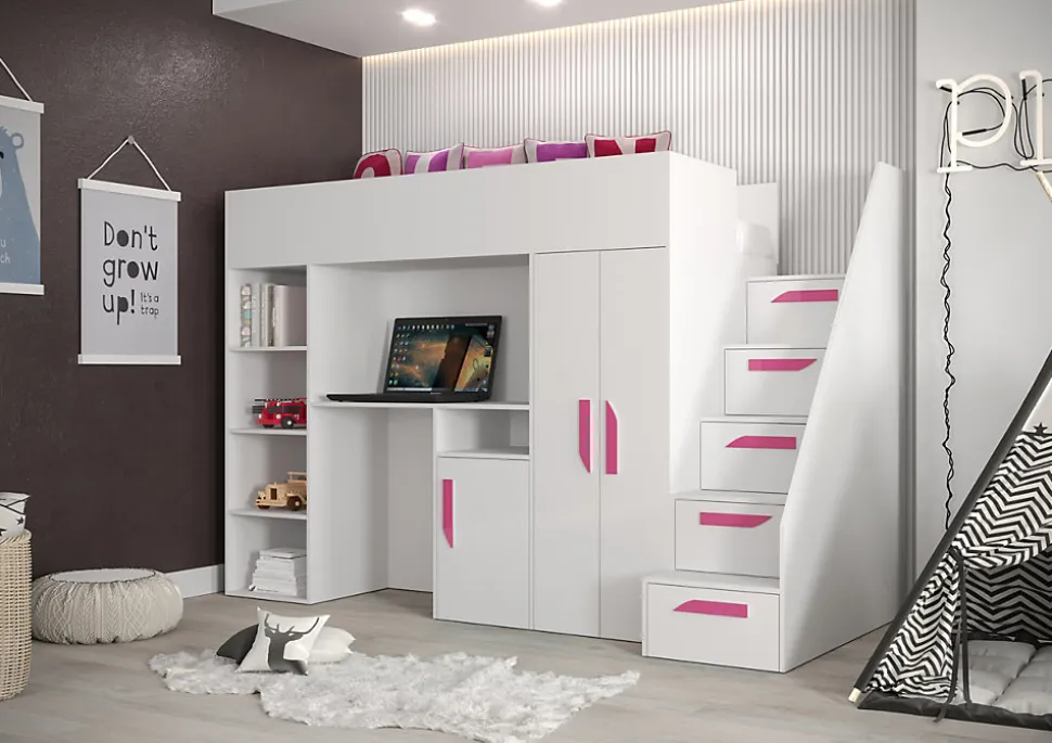 - PARTY 14 Lit superposé 247/165/120 (blanc/blanc/rose)