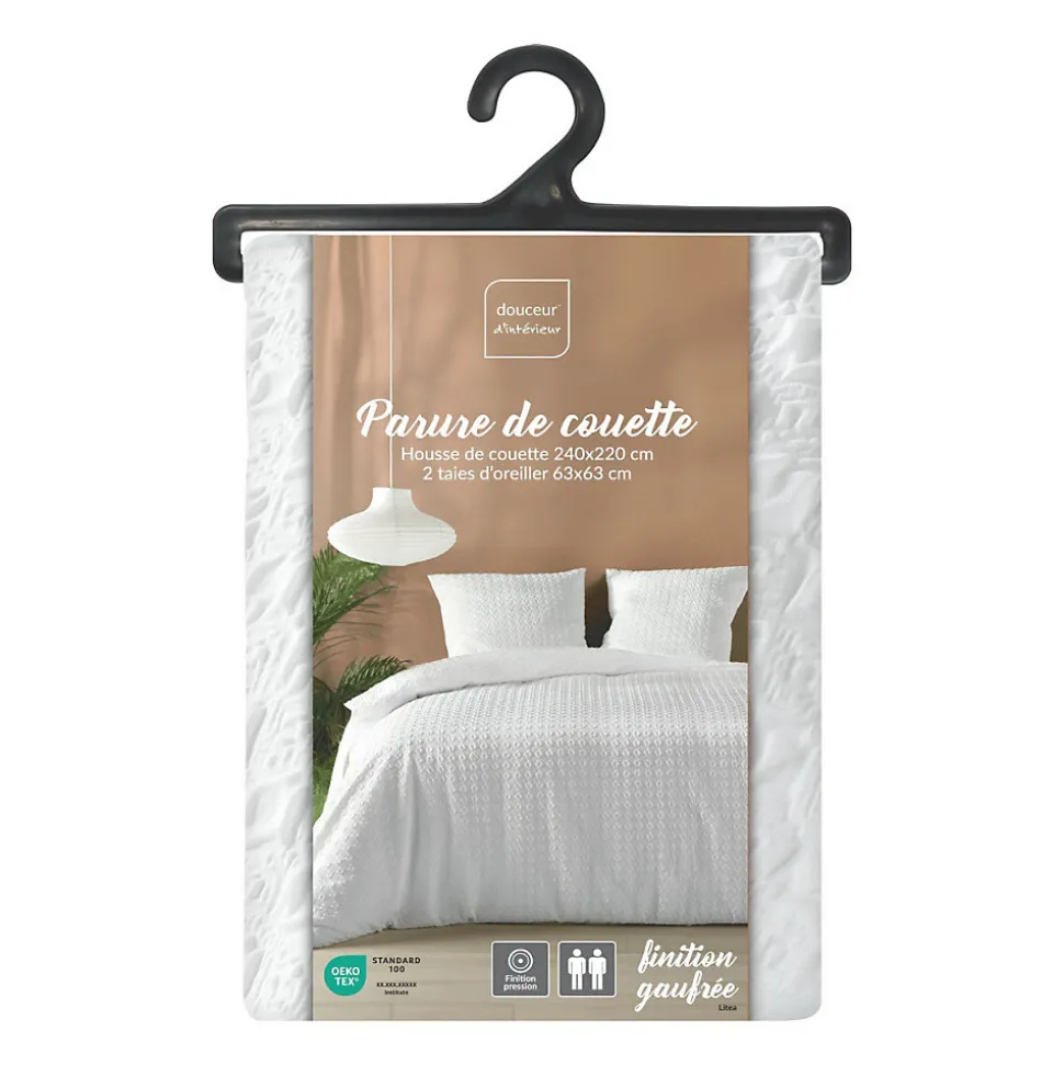 Parure 3 pièces 220x240cm gaufré blanc – 220x240cm – Blanc