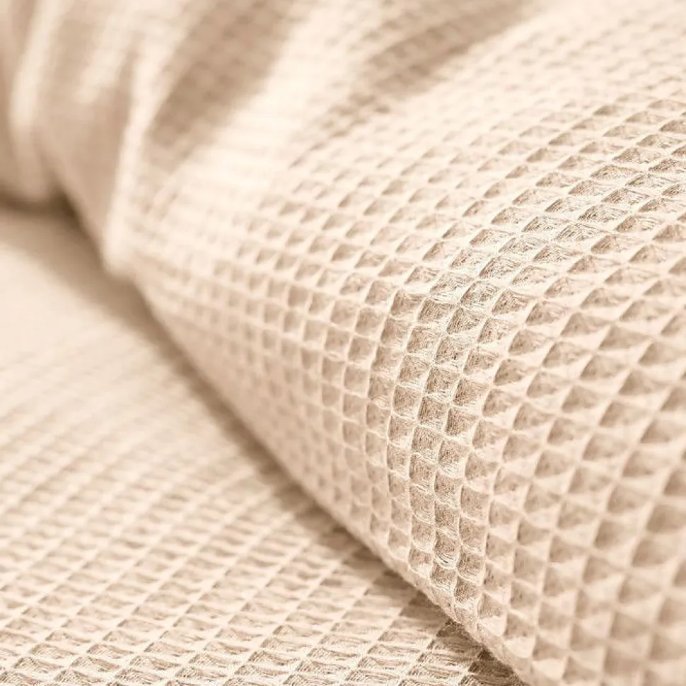 - 100 % coton nid d’abeille : matière légère, fluide et respirante apportant relief et douceur