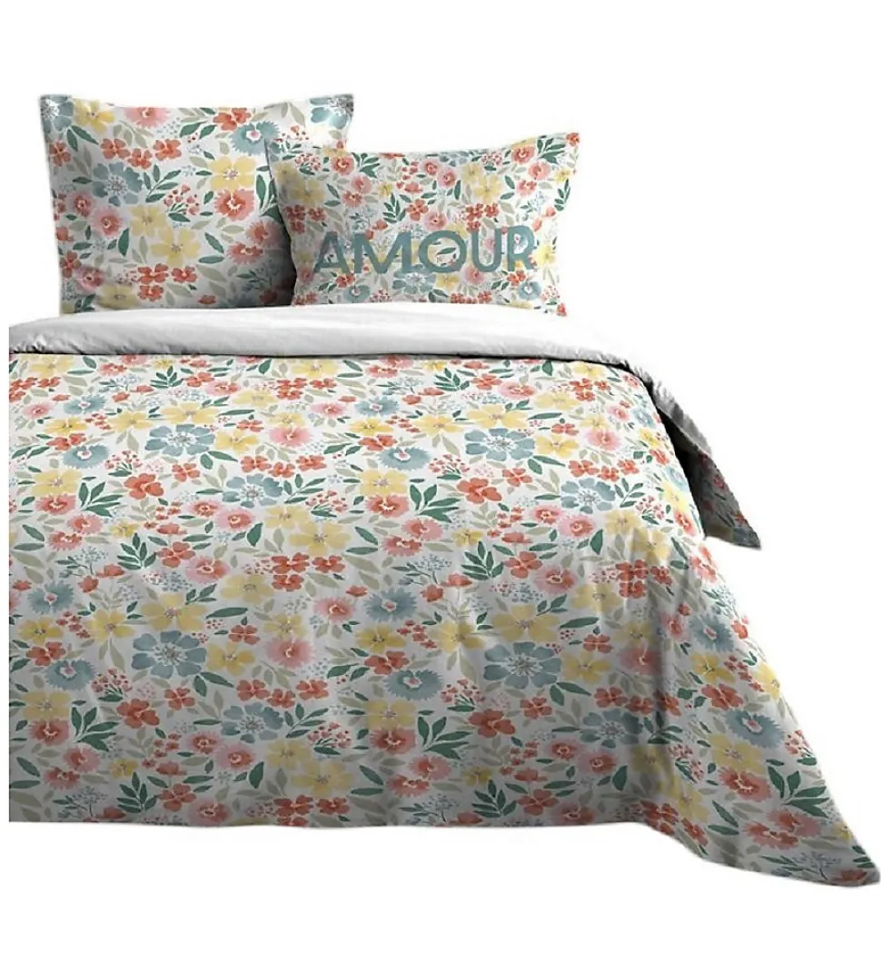 Parure de drap pour lit 2 personnes Apportez un style floral à votre chambre avec cette parure de draps aux motifs Fleurs Composition: 100 % Coton supérieur imprimé 57 fils/cm² Certification Oeko-Tex Garantit que les articles testés et certifiés ne présentent pas de pouvant nuire à la santé Contient: 1 Drap plat Dimension: 240 x 300 cm 1 Drap housse Dimension: 140 x 190 cm – Hauteur du bonnet 25 cm 2 Taies d'oreiller placées à volant plat Dimension 63 x 63 cm Lavable à 40° Recommandation : Laisser tremper le linge une nuit dans une bassine d’eau froide afin de dissoudre les apprêts et les pigments résiduels de teinture Retrouvez dans la même collection des Rideaux, Coussins, Parures de couette…