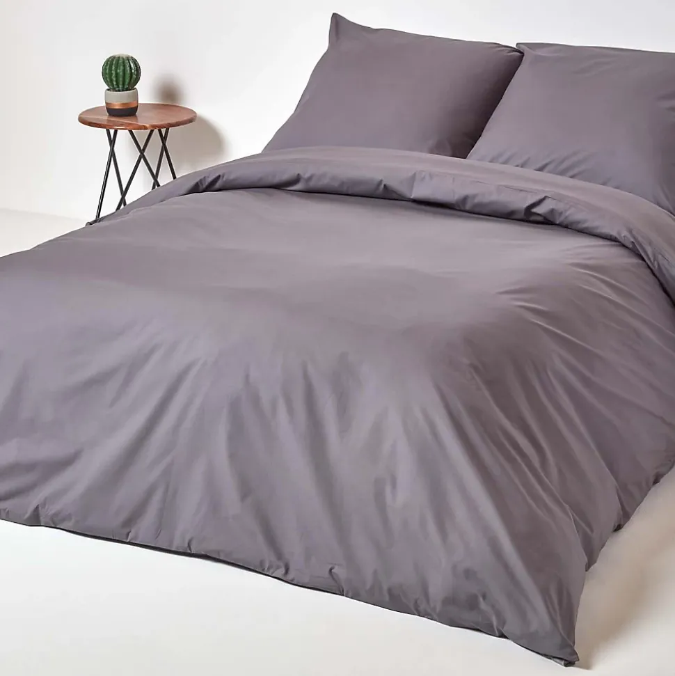 Dans une élégante teinte gris foncé, cette parure de lit en pur coton égyptien apportera beaucoup de douceur et est hypoallergénique et facile d’entretien. Parure de lit en coton Cette parure de lit est composée d’une housse de couette et 1 taie d’oreiller (155 x 200 cm, 155 x 220 cm) ou 2 taies d’oreiller 80 x 80 cm (240 x 220 cm). La housse de couette possède une fermeture par pression. Facile d’entretien, cet ensemble est lavable en machine. Linge de lit uni Notre gamme de linge de lit de qualité en pur coton est disponible dans de nombreuses teintes lumineuses et contemporaines. Vous serez séduit par son confort d’utilisation et sa résistance remarquable. Pour compléter votre parure, les taies d’oreiller, drap-housse et drap plat sont également disponibles sur notre site (vendus séparément).
