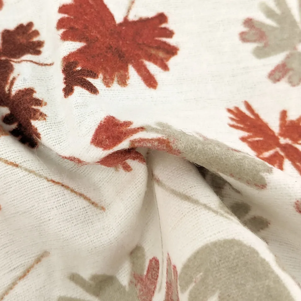 - Parure de lit 100% flanelle de coton avec des motifs de feuilles d’érable sur un fond blanc.