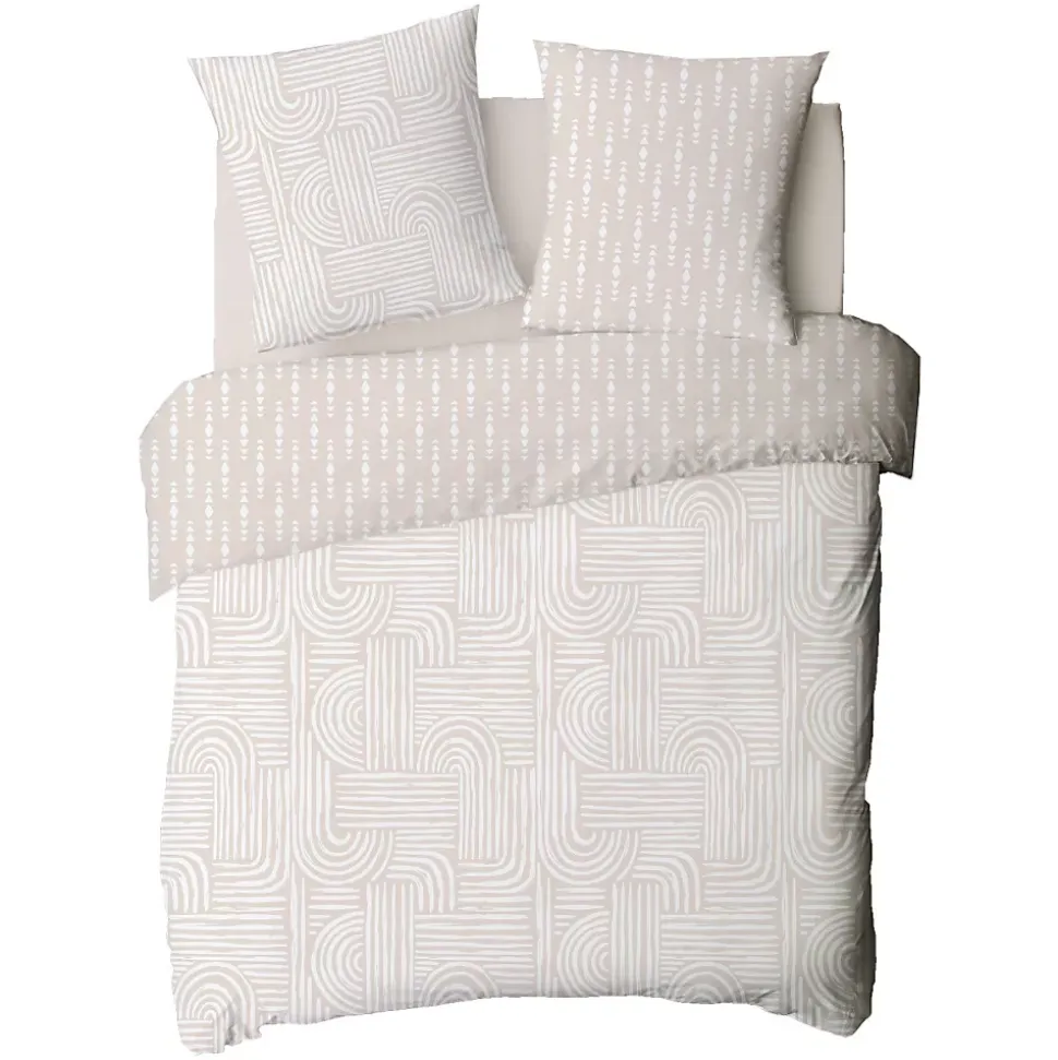 Parure de lit 2 personnes en coton 57 fils imprimé beige 240x220cm