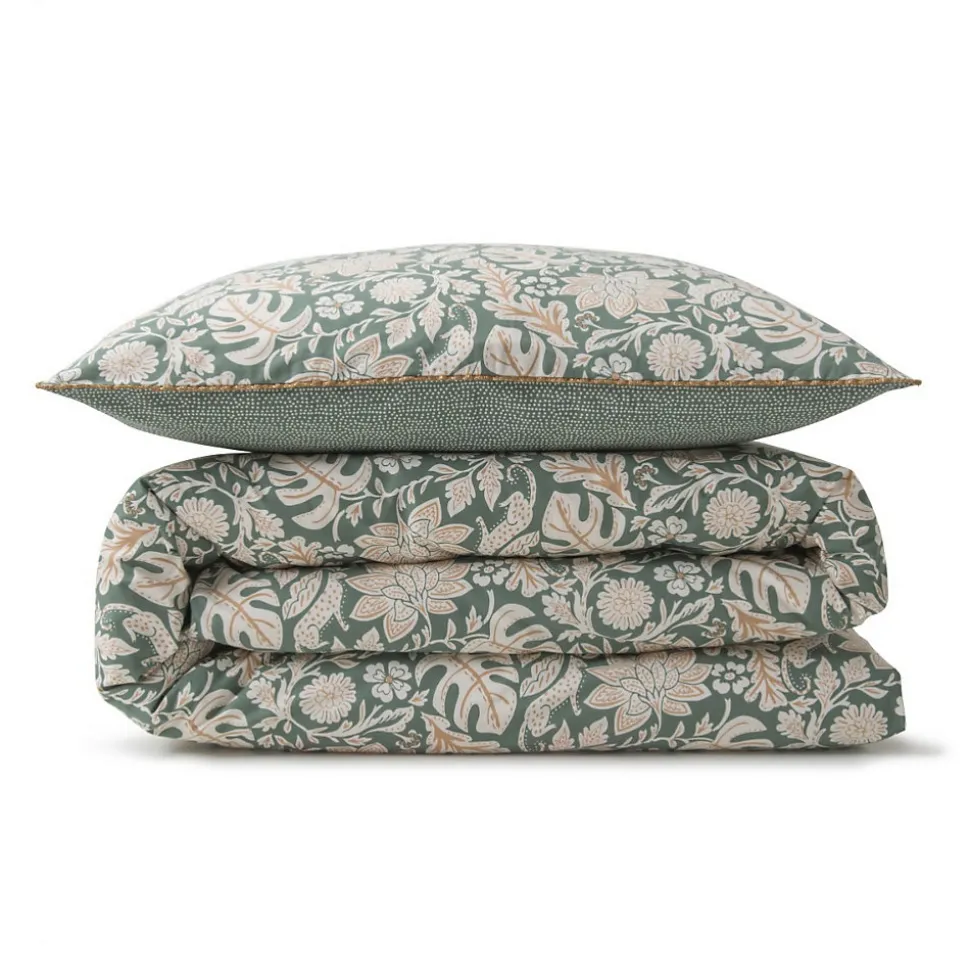 Parure de lit 2 personnes floral et pois en coton 260x240cm