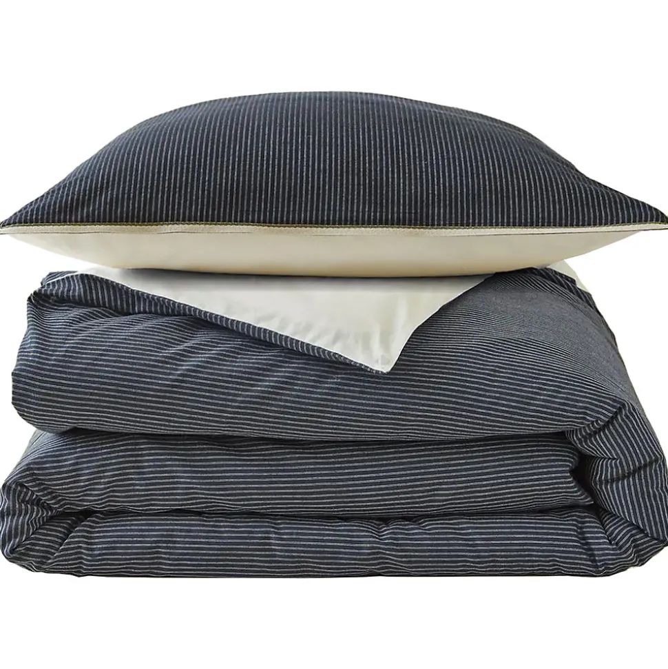 - Achetez la parure de lit 2 pièces : housse 140×200 cm et taie 50×80 cm 100% coton BRIXTON à rayures noires.