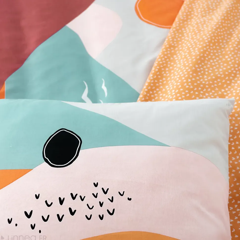 - Parure de lit VALLON multicolore composée d’une housse de couette 240×220 cm et de 2 taies d’oreillers 63×63 cm