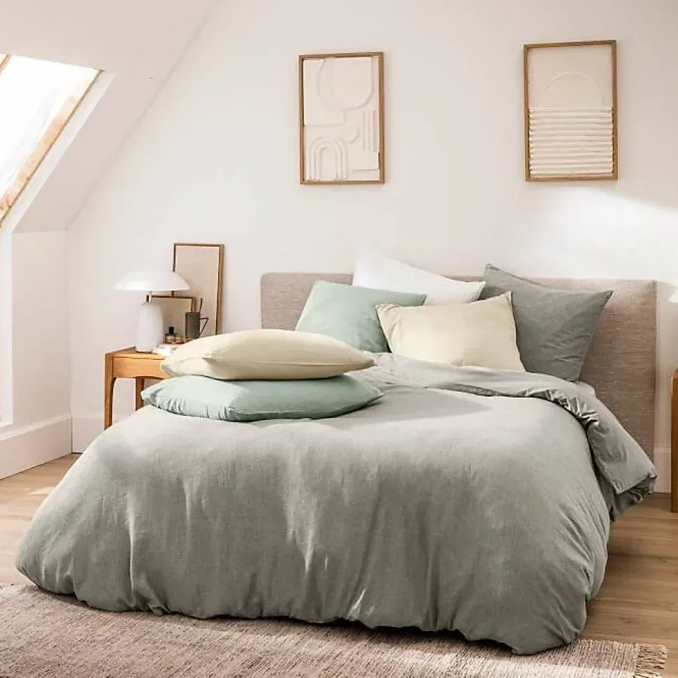 Parure 3 p. 260 x 240 cm fils teints laves Transformez votre chambre en un havre de paix avec la parure de lit Meline Sable. Conçue à partir de fils teints lavés, cette parure offre une douceur exceptionnelle et un fini légèrement texturé pour un rendu naturel et élégant. Sa teinte blanche pure ajoute une touche lumineuse et intemporelle à votre décoration intérieure.Dimensions : Housse de couette 260 x 240 cm, accompagnée de 2 taies d’oreiller 63 x 63 cm.Matière : Tissu haut de gamme en fils teints lavés (60 fils/cm²), durable et agréable au toucher.Design épuré : Idéal pour une ambiance minimaliste ou classique.Couleur: SableFacilité d’entretien : Lavable en machine pour un entretien pratique au quotidien.