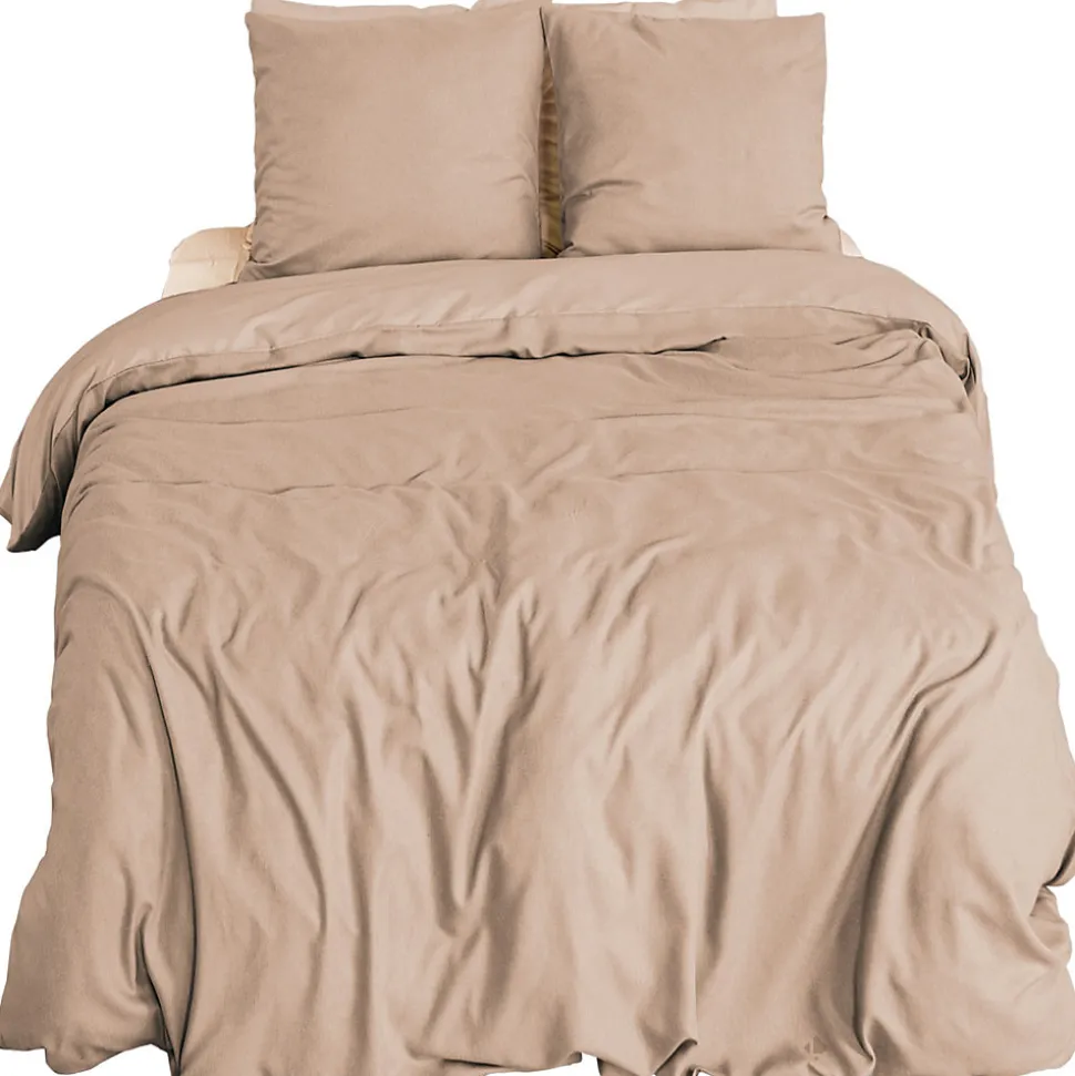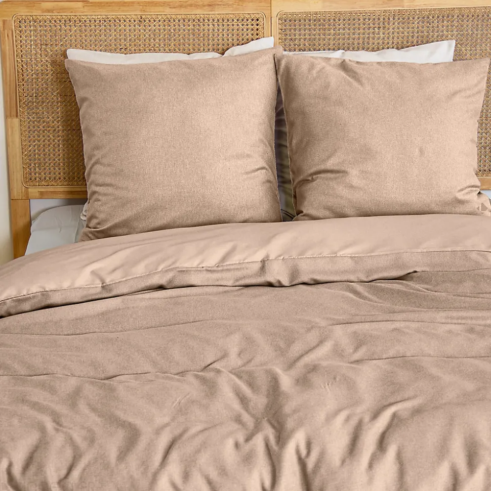 Parure de lit 240×220 cm SENSATION FLANELLE microfibre bi-matière inspiration flanelle rose Grège motif chinéDécouvrez la collection SENSATION FLANELLE, conçue pour vous envelopper de douceur et de chaleur tout au long de la saison hivernale. Inspirée de la flanelle de coton, cette parure de lit allie confort et style avec son élégant motif chiné, apportant une touche raffinée à votre chambre. Son design bi-matière offre un véritable cocon de bien-être. D’un côté, une face en flanelle microfibre 115 g/m2 qui procure une chaleur douce et réconfortante, idéale pour les nuits fraîches. De l’autre, une face en microfibre légère de 83 g/m2, pour un équilibre parfait entre chaleur et respirabilité. Cette association harmonieuse de matières garantit des nuits sereines et apaisantes, peu importe la température extérieure. Pratique et fonctionnelle, la parure Sensation Flanelle a été pensée pour vous simplifier la vie. Les housses de couette sont dotées de fentes passe-mains, facilitant ainsi l’habillage du lit, tandis que la fermeture à boutons assure un maintien impeccable de la couette. La housse de couette en 240×220 cm est parfaite pour un lit double queen-size en 160×200 cm. Les taies d’oreiller au format 63×63 cm en forme de sac complètent harmonieusement cet ensemble, pour un lit à la fois élégant et confortable.Proposée en quatre teintes douces et intemporelles, la collection s’intègre parfaitement à tout type de décoration intérieure. Que vous ayez un style moderne ou plus classique, cette parure deviendra un incontournable de votre chambre cet hiver. Offrez-vous le luxe de la douceur et transformez vos nuits en moments de pur confort avec la collection Sensation Flanelle.Côté technique :Matière : bi-matière microfibre sensation flanelle 115g sur une face et microfibre 83 g/m2 sur l’autre faceGrammage : 115 g/m2 et 83 g/m2Motifs : uni chinéParure composée de 1 housse