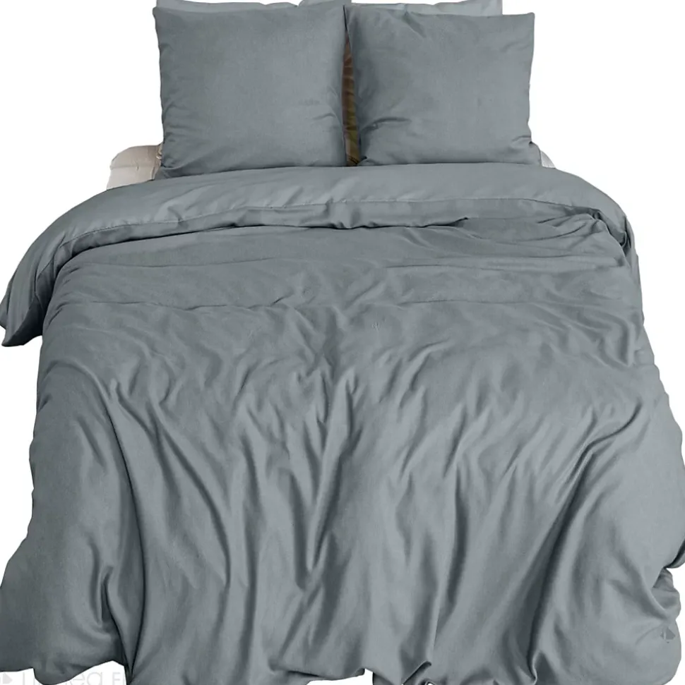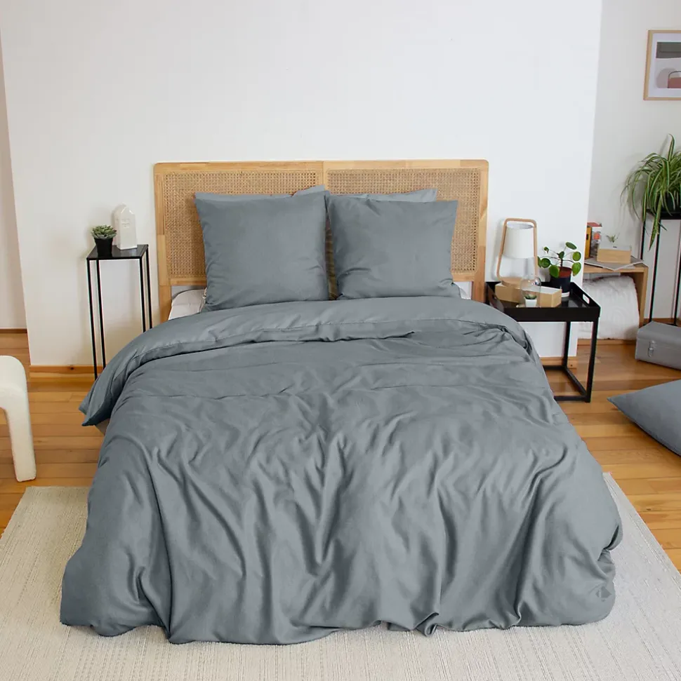 Parure de lit 240×220 cm SENSATION FLANELLE microfibre bi-matière inspiration flanelle gris Ardoise motif chinéDécouvrez la collection SENSATION FLANELLE, conçue pour vous envelopper de douceur et de chaleur tout au long de la saison hivernale. Inspirée de la flanelle de coton, cette parure de lit allie confort et style avec son élégant motif chiné, apportant une touche raffinée à votre chambre. Son design bi-matière offre un véritable cocon de bien-être. D’un côté, une face en flanelle microfibre 115 g/m2 qui procure une chaleur douce et réconfortante, idéale pour les nuits fraîches. De l’autre, une face en microfibre légère de 83 g/m2, pour un équilibre parfait entre chaleur et respirabilité. Cette association harmonieuse de matières garantit des nuits sereines et apaisantes, peu importe la température extérieure. Pratique et fonctionnelle, la parure Sensation Flanelle a été pensée pour vous simplifier la vie. Les housses de couette sont dotées de fentes passe-mains, facilitant ainsi l’habillage du lit, tandis que la fermeture à boutons assure un maintien impeccable de la couette. La housse de couette en 240×220 cm est parfaite pour un lit double queen-size en 160×200 cm. Les taies d’oreiller au format 63×63 cm en forme de sac complètent harmonieusement cet ensemble, pour un lit à la fois élégant et confortable.Proposée en quatre teintes douces et intemporelles, la collection s’intègre parfaitement à tout type de décoration intérieure. Que vous ayez un style moderne ou plus classique, cette parure deviendra un incontournable de votre chambre cet hiver. Offrez-vous le luxe de la douceur et transformez vos nuits en moments de pur confort avec la collection Sensation Flanelle.Côté technique :Matière : bi-matière microfibre sensation flanelle 115g sur une face et microfibre 83 g/m2 sur l’autre faceGrammage : 115 g/m2 et 83 g/m2Motifs : uni chinéParure composée de 1 hous