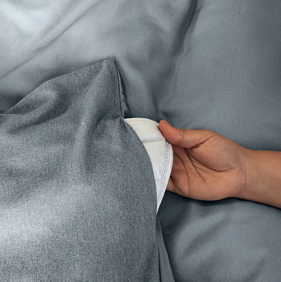 - Housse de couette dotée de fentes passe-mains facilitant l’habillage du lit, avec fermeture à boutons assurant un maintien impeccable.