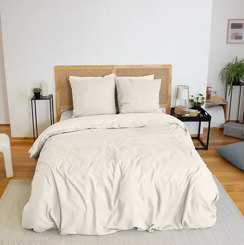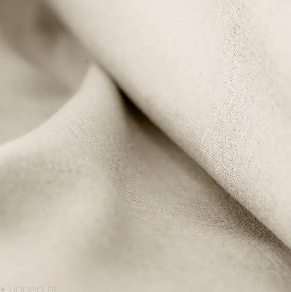 Parure de lit 260×240 cm SENSATION FLANELLE microfibre bi-matière inspiration flanelle beige Crème motif chinéDécouvrez la collection SENSATION FLANELLE, conçue pour vous envelopper de douceur et de chaleur tout au long de la saison hivernale. Inspirée de la flanelle de coton, cette parure de lit allie confort et style avec son élégant motif chiné, apportant une touche raffinée à votre chambre. Son design bi-matière offre un véritable cocon de bien-être. D’un côté, une face en flanelle microfibre 115 g/m2 qui procure une chaleur douce et réconfortante, idéale pour les nuits fraîches. De l’autre, une face en microfibre légère de 83 g/m2, pour un équilibre parfait entre chaleur et respirabilité. Cette association harmonieuse de matières garantit des nuits sereines et apaisantes, peu importe la température extérieure. Pratique et fonctionnelle, la parure Sensation Flanelle a été pensée pour vous simplifier la vie. Les housses de couette sont dotées de fentes passe-mains, facilitant ainsi l’habillage du lit, tandis que la fermeture à boutons assure un maintien impeccable de la couette. La housse de couette en 260×240 cm est parfaite pour un lit double king-size en 180×200 cm. Les taies d’oreiller au format 63×63 cm en forme de sac complètent harmonieusement cet ensemble, pour un lit à la fois élégant et confortable.Proposée en quatre teintes douces et intemporelles, la collection s’intègre parfaitement à tout type de décoration intérieure. Que vous ayez un style moderne ou plus classique, cette parure deviendra un incontournable de votre chambre cet hiver. Offrez-vous le luxe de la douceur et transformez vos nuits en moments de pur confort avec la collection Sensation Flanelle.Côté technique :Matière : bi-matière microfibre sensation flanelle 115g sur une face et microfibre 83 g/m2 sur l’autre faceGrammage : 115 g/m2 et 83 g/m2Motifs : uni chinéParure composée de 1 housse