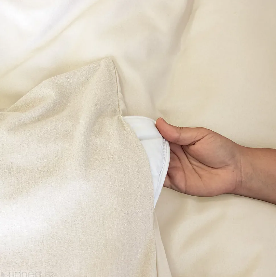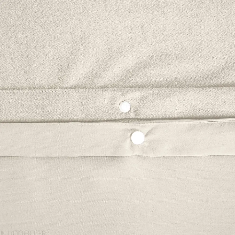 - Housse de couette dotée de fentes passe-mains facilitant l’habillage du lit, avec fermeture à boutons assurant un maintien impeccable.