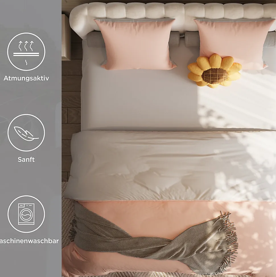 1. Il est équipé d’un drap-housse, mieux fixé qu’un drap plat et moins sujet aux plis, ce qui permet de garder le lit toujours propre et esthétique. De plus, il est accompagné d’une housse de couette utilisable toute l’année, qui peut être associée à une couette en hiver pour un confort optimal et une utilisation simplifiée pour les clients.2. La housse de couette est dotée de 4 attaches aux coins pour fixer le noyau de la couette en position, évitant tout déplacement. Cela garantit que la couette conserve toujours une forme propre et ordonnée.3. Elle est fabriquée en tissu polyester, qui offre une excellente résistance aux plis et une grande stabilité de forme. Même après une utilisation et un lavage répétés, elle conserve son bel aspect et sa texture.4. Avec notre ensemble de literie pratique, profitez d’une solution idéale pour un lit toujours propre et confortable. La combinaison de drap-housse, housse de couette et taies d’oreiller garantit une apparence soignée et esthétique à votre espace de sommeil.5. Cet ensemble est parfait pour les personnes recherchant un lit soigné et élégant sans effort. Il convient parfaitement à un usage quotidien dans la chambre et répond aux attentes de ceux qui privilégient une solution facile à entretenir.Caractéristiques du produit :Ensemble de literie pour un confort tout au long de l’annéeAttaches aux coins pour une couette bien maintenueTissu en polyester de haute qualité, résistant aux plis et durableFacile à nettoyer et à entretenirDimensions :Housse de matelas 140x200x30 cm + housse de couette 140×210 cm + taie d’oreiller 80×80 cm (x2)Matériau :Microfibre brossée 110 g/m², très douce, avec une sensation proche du cotonRespirante et régulatrice de températureEmbellissez votre chambre et profitez d’un sommeil réparateur.