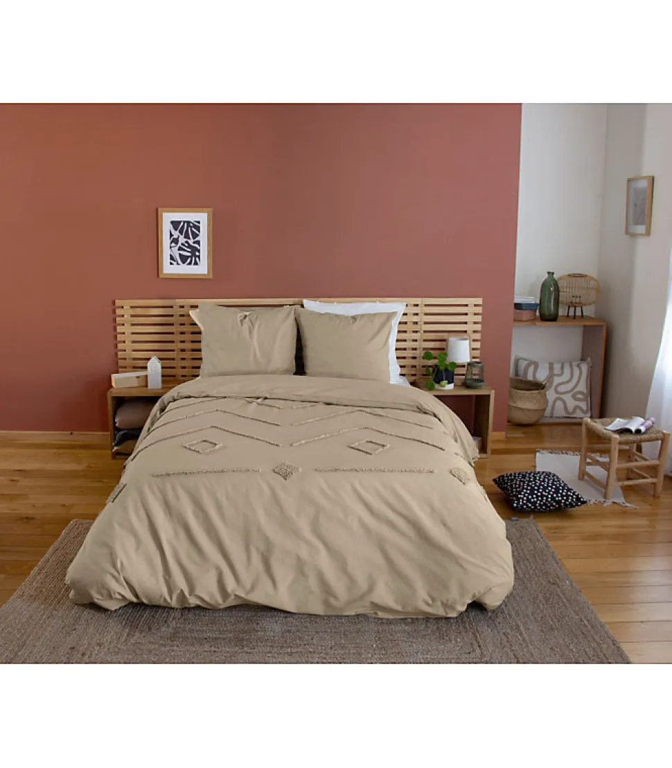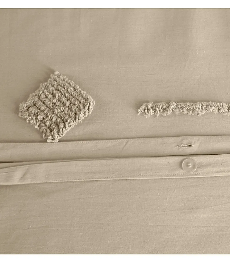 Parure de lit AKOE – 240×220 cm – Coton lavé tufté – 52 fils/cm² – 220x240cm – Taupe