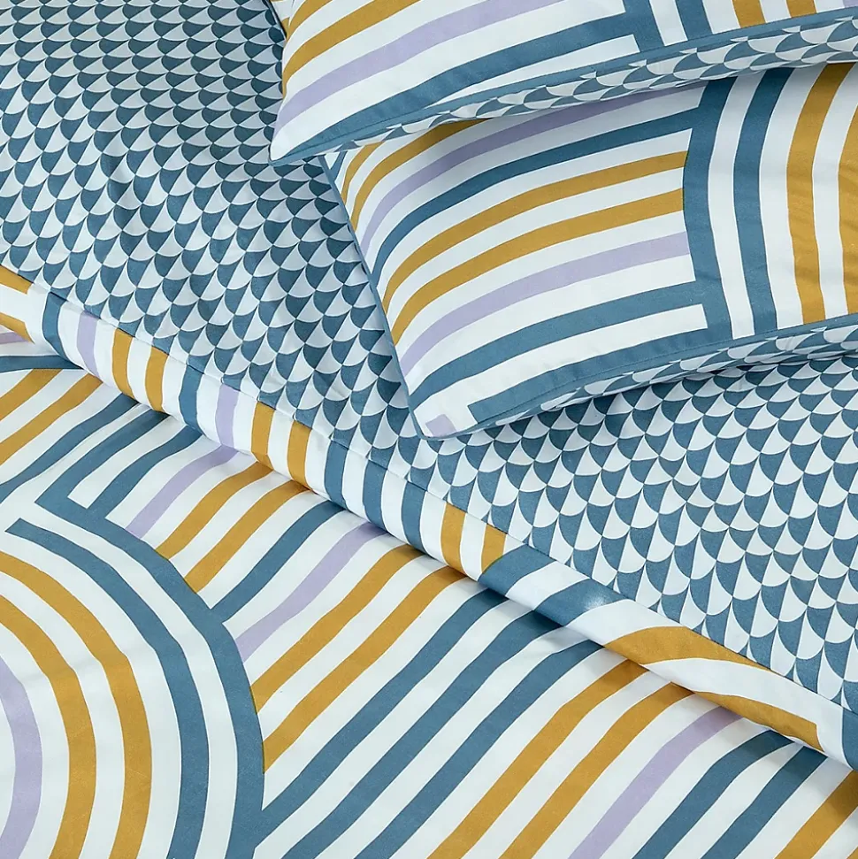 Parure de lit en microfibre réversible imprimé géométrique TANGO comprenant 1 housse de couette + 2 taies d’oreiller 63x63cmApportez une touche de modernité et de dynamisme à votre chambre avec la parure de lit Tango, conçue pour sublimer votre intérieur avec un design réversible et un imprimé géométrique audacieux dans des tons bleus et jaune. Son motif contemporain apporte du caractère à votre décoration tout en créant une atmosphère chaleureuse et élégante.Les taies d’oreiller assorties complètent l’ensemble avec harmonie, ajoutant une touche raffinée à votre lit. Conçue pour votre bien-être, la parure Tango est certifiée Oeko-Tex et lavable en machine à 30°, garantissant un entretien facile et une durabilité optimale.Nos parures Tango sont réalisées en microfibre lavée, une matière douce et soyeuse au toucher effet peau de pêche, offrant un confort incomparable.Offrez-vous le parfait équilibre entre style et confort avec Tango, une parure qui invite à la détente et à la douceur.A compléter avec nos draps housse de la collection ESSENTIEL – FUTURE HOMECOMPOSITIONS PRODUIT :Matière : 100% Polyester – Microfibre lavée – effet peau de pêcheCouleurs : MulticoloreFinition des taies : BiaisFinition de la housse de couette : boutonsCertification : OEKO-TEXLavage : à 30°C en machine2 taies d’oreiller 63x63cmEn savoir plus :Ce produit labélisé STANDARD 100 by OEKO-TEX – certificat n° 18.HPK48415 HOHENSTEIN HTTI suit un processus de fabrication certifié et contrôlé, respectueux de votre peau. Le STANDARD 100 by OEKO-TEX EST un label qui vous garantit que vos draps ne contiennent aucuns produits toxiques pour votre santé.