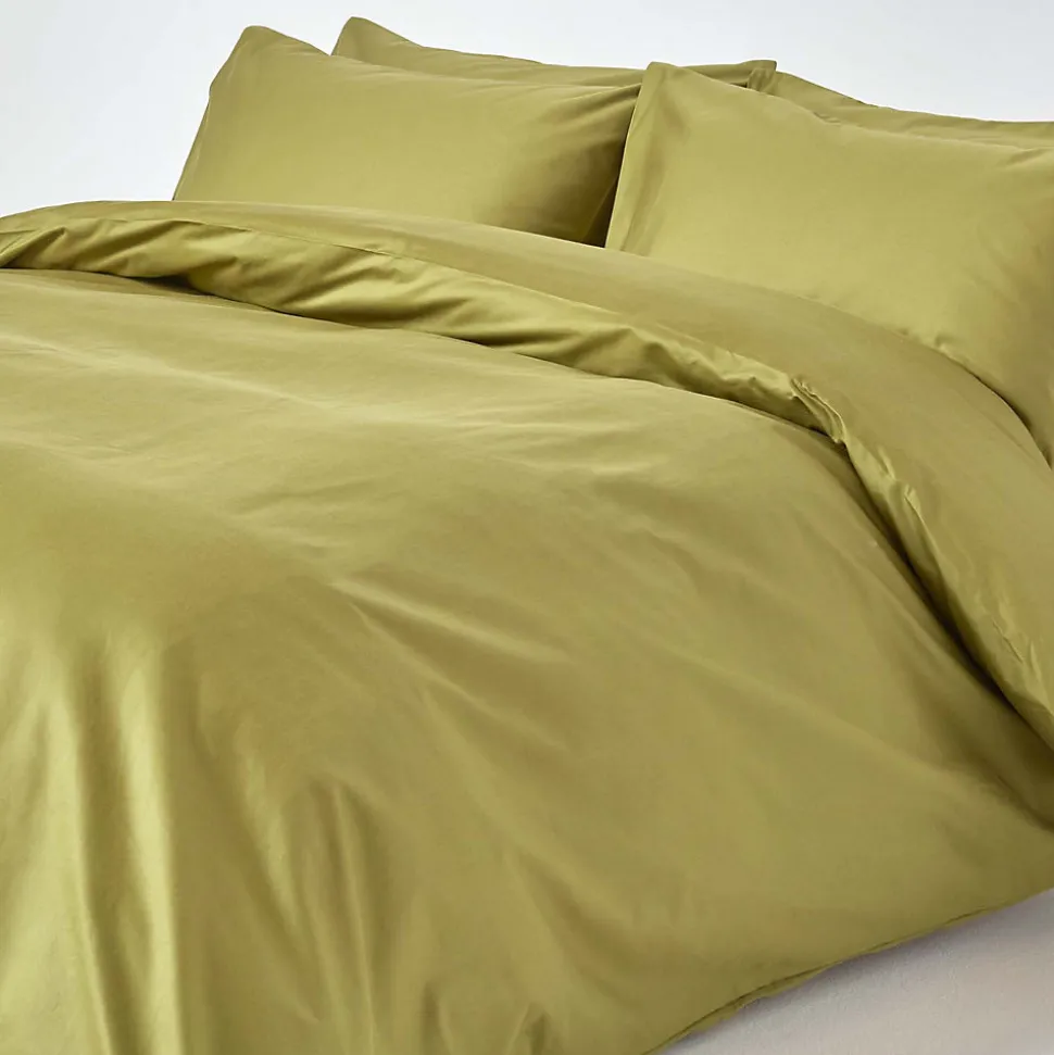 Parure de lit en satin de coton égyptien 1000 fils vert olive, 230x220cm – HOMESCAPES
