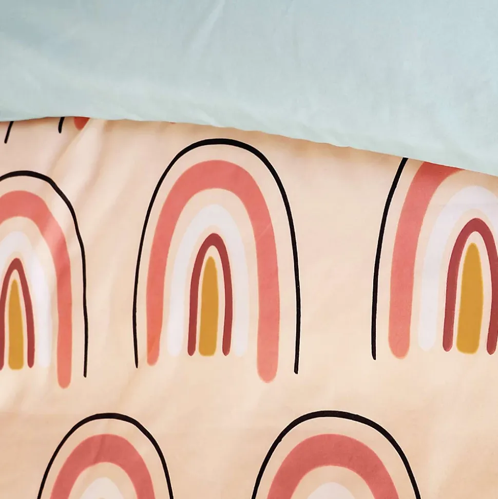 Cette parure associe un visage librement inspiré d’une licorne et un imprimé vitaminé parsemé d’arcs en ciel.FICHE TECHNIQUE- Parure comprenant une housse de couette et une taie d’oreiller- Matière : 100% polyester 72g/m²- Tissu certifié OEKO-TEX- Oreilles rembourrées- Avec pressions et passes-mains- Couleur : Multicolore- Convient parfaitement pour un lit 1 placeCARACTERISTIQUES TECHNIQUES- Dimensions de la housse de couette : L. 200 cm x l. 140 cm- Dimensions de la taie d’oreiller : L. 63 x l. 63 cm- Poids : 0,508 kg