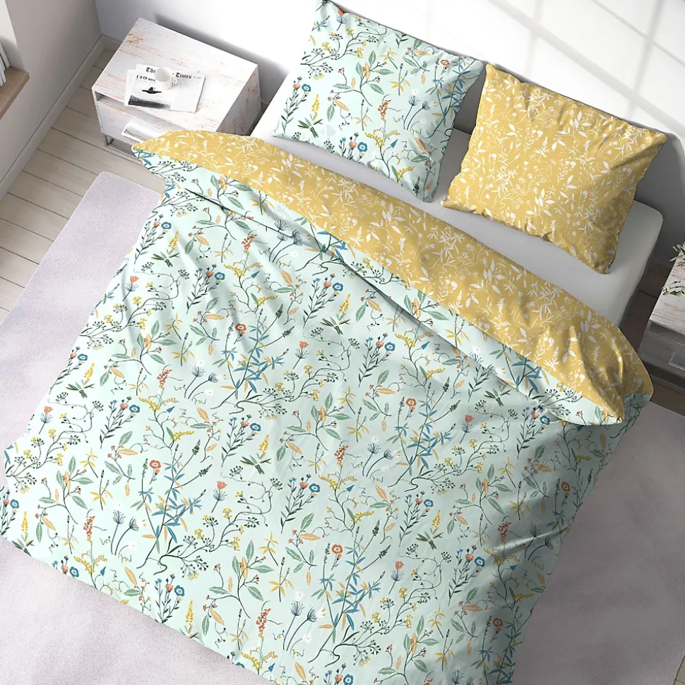 - Parure 3 pièces 240×220 cm + 2 taies 63×63 cm à motif floral