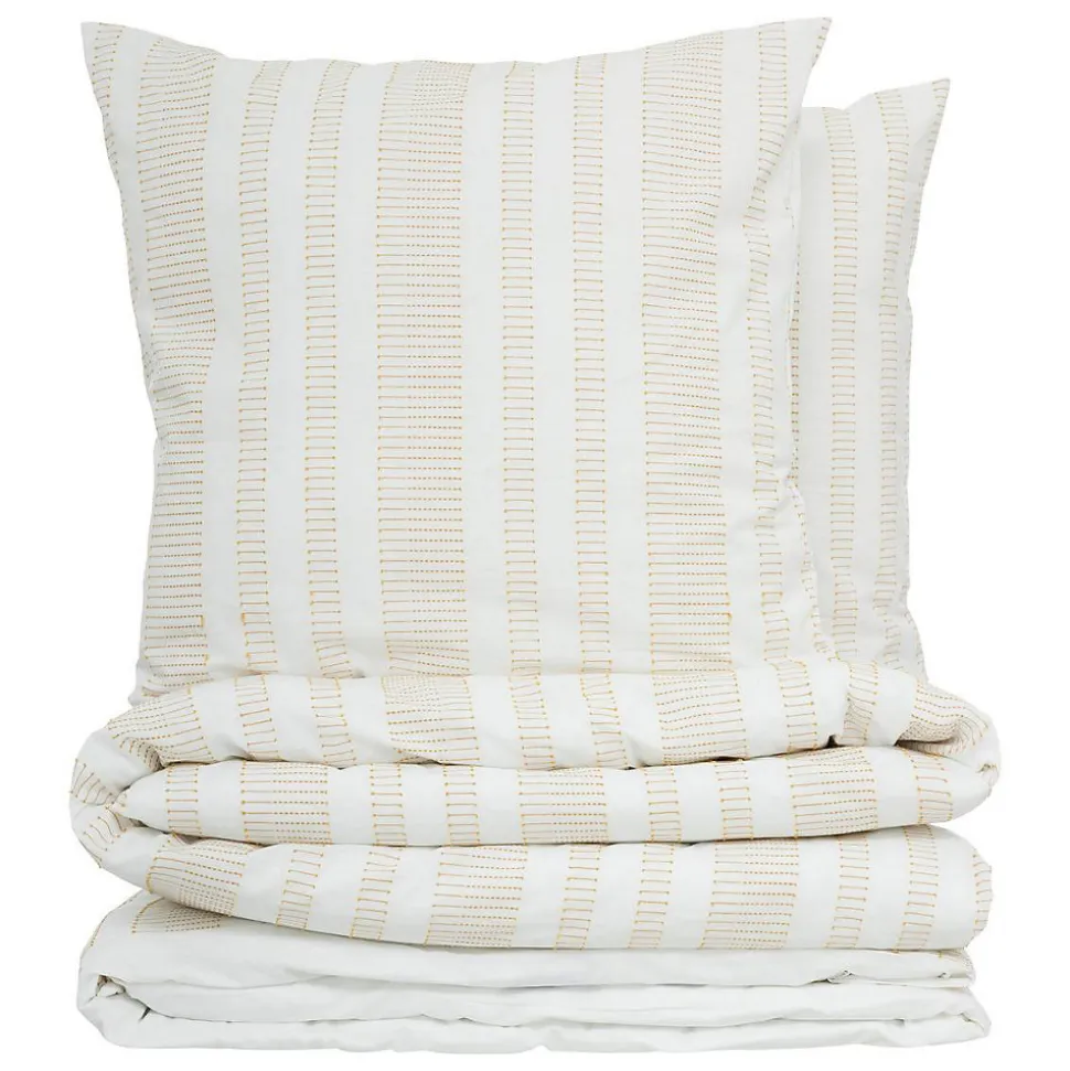 Lovez-vous dans la parure de lit « Isao » Atmosphera pour faire de beaux rêves.Le confort d’une matière naturelleFaite pour un grand lit deux personnes, la parure de lit « Isao » dispose d’une housse de couette avec deux taies carrées. Elle est confectionnée en 100% coton pour vous garantir un rendu doux et robuste. Par ailleurs, le lavage en machine est possible jusqu’à 60°C.Cet ensemble neutre vous permettra de mettre en valeur un dessus de lit coloré Atmosphera.Le petit plus décoMultipliez les coussins de diverses formes pour finaliser votre literie de manière moderne.