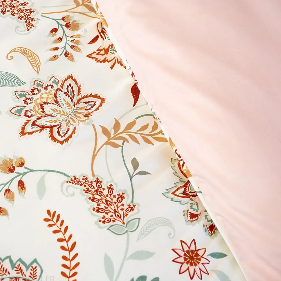 Parure 240×220 cm + 2 taies 63×63 cm à motifs floraux rose pastel