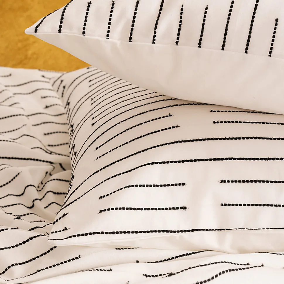 Si vous aimez la décoration ethnique chic, la parure de lit « Kain » Atmosphera conviendra parfaitement à votre chambre à coucher.Une matière naturelleLa parure de lit « Kain » comporte une housse de couette accompagnée de deux taies d’oreiller carrées. Confectionnée en coton, elle se nettoiera facilement en machine à laver. Par ailleurs, elle est dotée d’une fermeture à boutons.Ajoutez un jeté de lit Atmosphera aux couleurs contrastantes pour donner du relief à la parure de lit « Kain ».Le petit plus décoUne belle tête de lit en roseau ou en rotin donnera tout de suite un côté exotique à votre pièce.