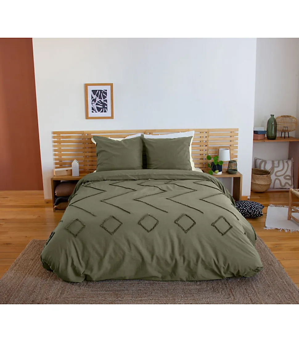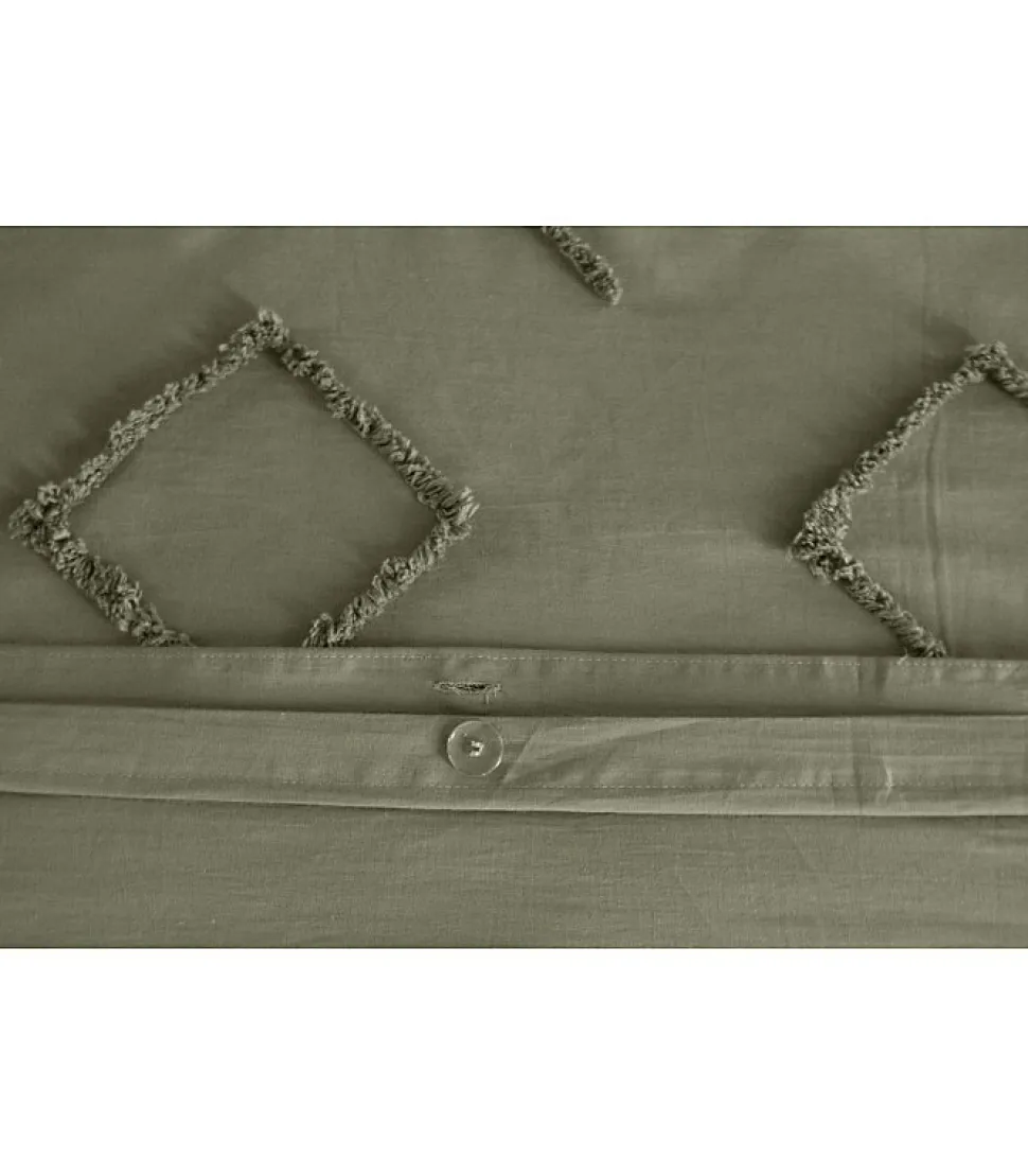 Parure de lit KAYL – 240×220 cm – Coton BCI lavé tufté – 52 fils/cm² – Kaki – 220x240cm – Vert kaki