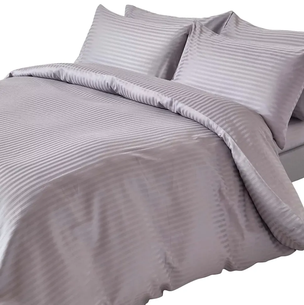 Parure de lit satin rayé en coton égyptien 330 fils gris, 230x220cm – HOMESCAPES