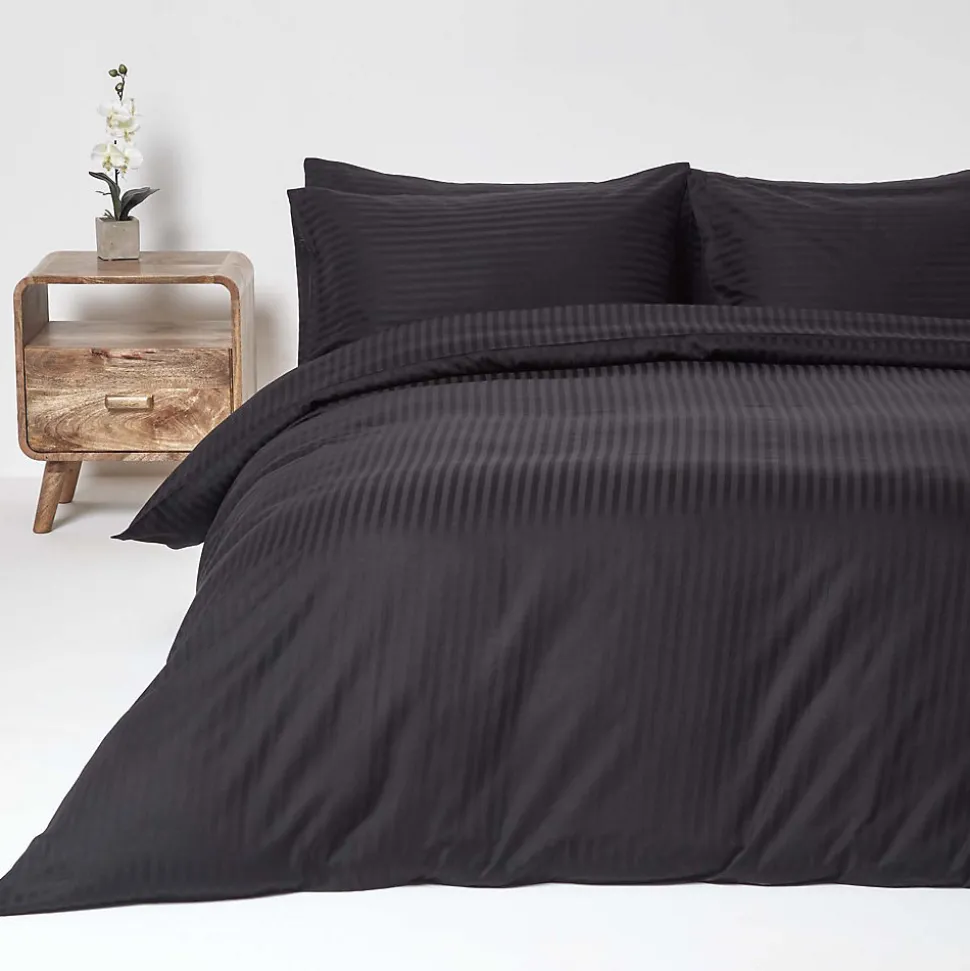 Parure de lit satin rayé en coton égyptien 330 fils noir, 230x220cm – HOMESCAPES
