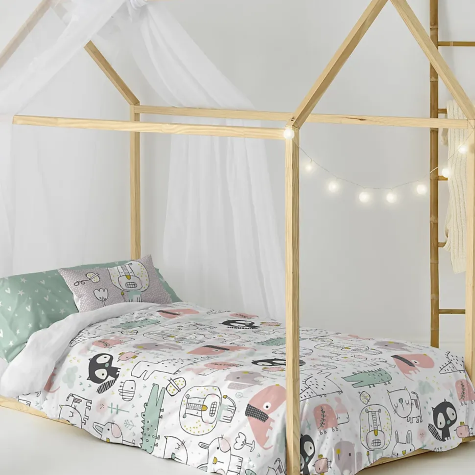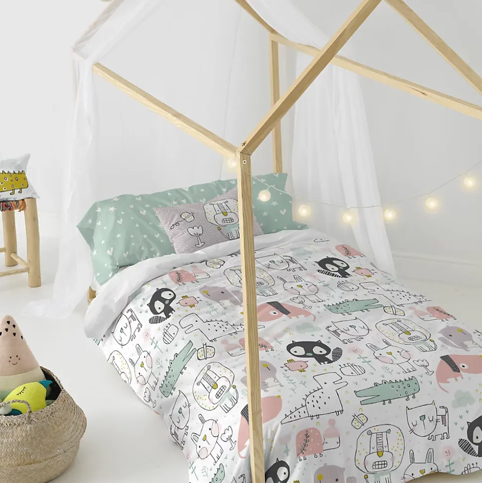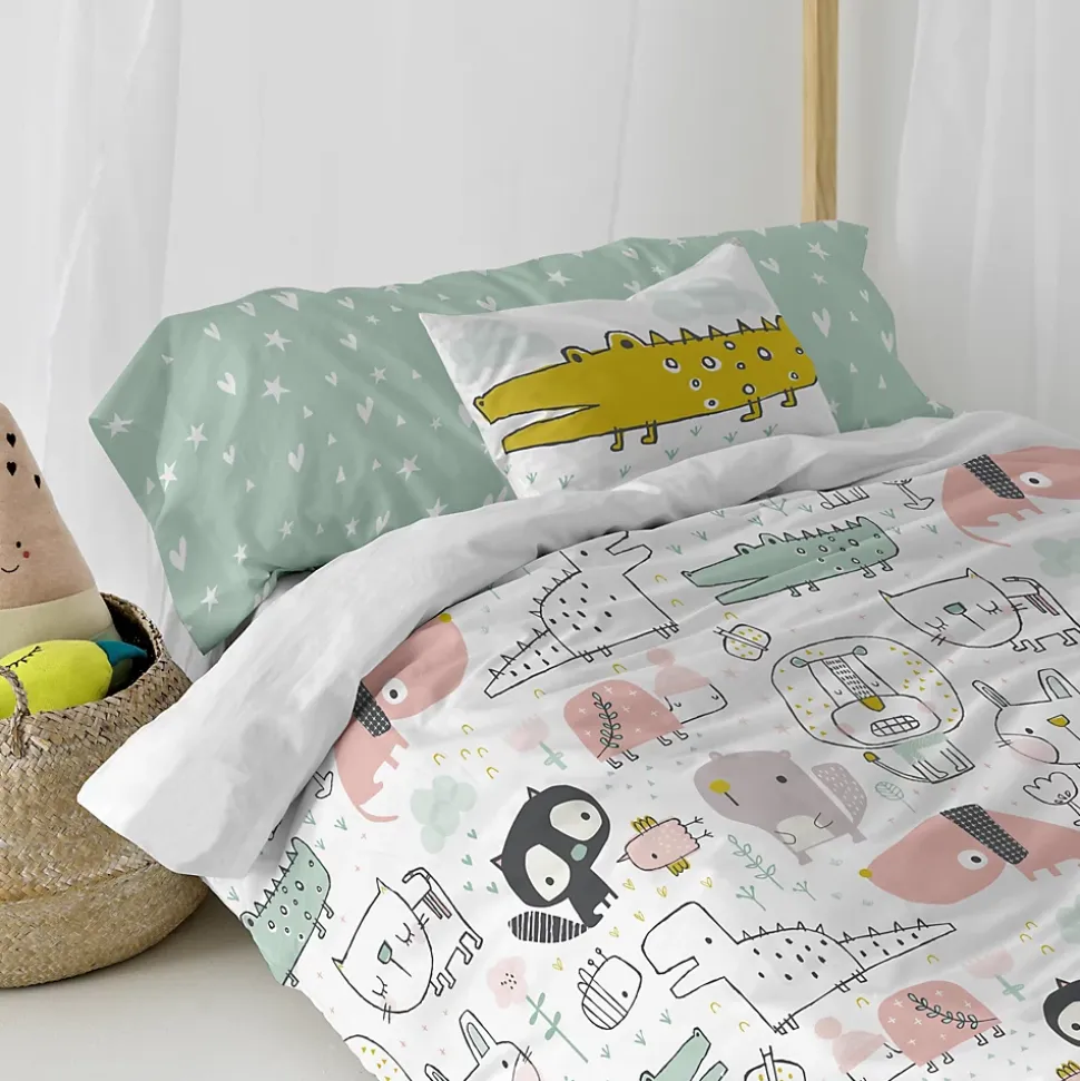 Ajoutez une touche de magie et d’amusement à la chambre de votre enfant avec la housse de couette BEST BUDDIES de la collection Moshi moshi. Cette housse de couette est fabriquée en Espagne avec du coton naturel de 60 fils/cm2. Elle est dotée d’une fermeture en plastique « poppers » qui permet de la changer facilement le jour où elle est lavée. Son motif d’animaux aux couleurs pastel créera une atmosphère pleine de douceur et de fantaisie, idéale pour faire de l’heure du coucher un moment privilégié. Le linge de lit n’est pas inclus.1 x Housse de couette 140×2001 x Taie d’oreiller 63×63