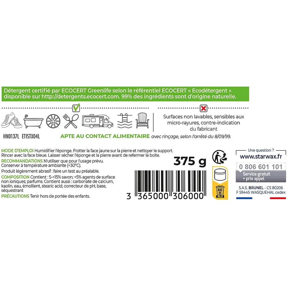 Pierre de nettoyage multi-surfaces SoluVert Starwax 375g