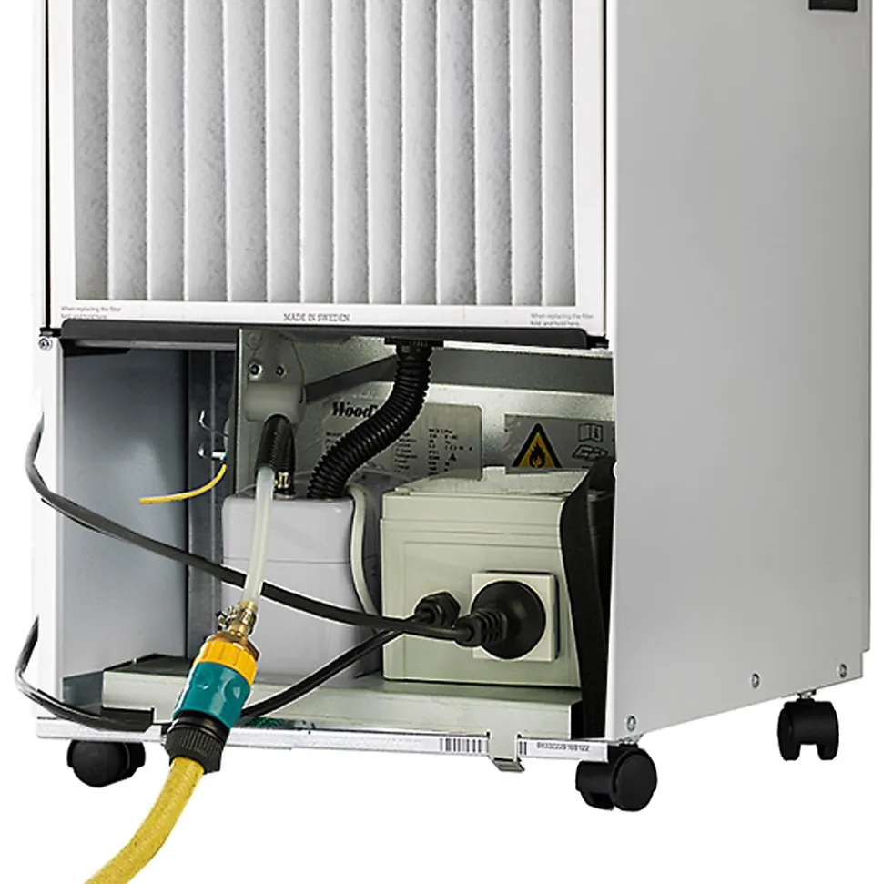 La pompe de relevage WDP-01 Wood’s est une pompe de relevage robuste qui s’adapte sur les déshumidificateurs des séries SW/WCD/LD de la marque Wood’s. Grâce à cette pompe, votre déshumidificateur est parfaitement autonome lorsque vous n’avez pas d’évacuation basse pour faire le drainage permanent. Cette pompe vous permet d’évacuer l’eau produite par le déshumidificateur jusqu’à une hauteur de 10m (Par exemple un lavabo, une évacuation de machine à laver ou même au rez-de-chaussée si l’appareil se trouve dans une cave ou un sous-sol). Ainsi vous n’avez plus besoin de vider de bac, l’appareil fonctionnera en continu sans aucun risque de fuite ! La pompe est installée à la place du bac à eau, dans le déshumidificateur, et est donc complètement intégrée dans l’appareil. Comme elle s’installe facilement elle se démonte également facilement. Très faible consommation, 3W car elle se déclenche lorsque le flotteur détecte l’eau présente dans la pompe.