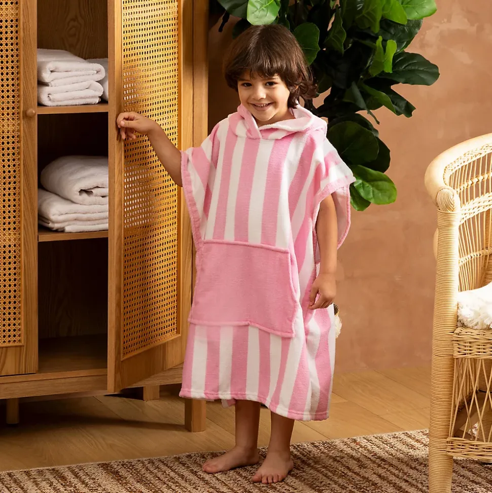 Très pratique à la plage comme au bord d’une piscine, le poncho « Wili » Atmosphera for kids peut également être utilisé au sortir du bain quotidien. Doté d’une capuche et d’une poche kangourou sur le devant, il est entièrement rayé dans des coloris rose et blanc. Un indispensable qui plaira aux petits comme aux grands !Taille unique100 % polyester Déballage et montage Conservez l’emballage quelques jours en cas de retour. Consultez les consignes de tri de votre commune pour recycler correctement votre emballage. Conseils d’entretien Ce poncho « Wili » est lavable en machine à 40° Le repassage à moins de 110°. Séchage en machine à moyenne température. Le nettoyage à sec est interdit.