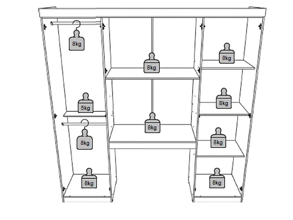 Avec le pont de lit ANTERO, créer un réel espace de rangement dans votre pièce sans prendre trop de place. Par son style sobre et contemporain ce meuble trouvera facilement sa place dans tous types d’intérieur !Caractéristiques Couleur (nuance) : Blanc Matière (précision) : Panneau de particule Finition : Vernis Taille (couchage) : 90 x 190 cm Taille : 90×190 cm Nombre de places : 1 place 6 portes Type de rangement : 1 niche, 5 lingères, 2 penderies À monter soi-mêmeDimensions Longueur : 200 cm Hauteur : 206 cm Profondeur : 46 cmLivraisonLors de la livraison, il est conseillé de vérifier que le bon nombre de colis a été livré.ColisColis n°1 : Longueur 209 cm, Largeur 47 cm, Hauteur 5 cm, Poids 26 kg. Colis n°2 : Longueur 195 cm, Largeur 57 cm, Hauteur 6 cm, Poids 34 kg. Colis n°3 : Longueur 201 cm, Largeur 47 cm, Hauteur 8 cm, Poids 30 kg.