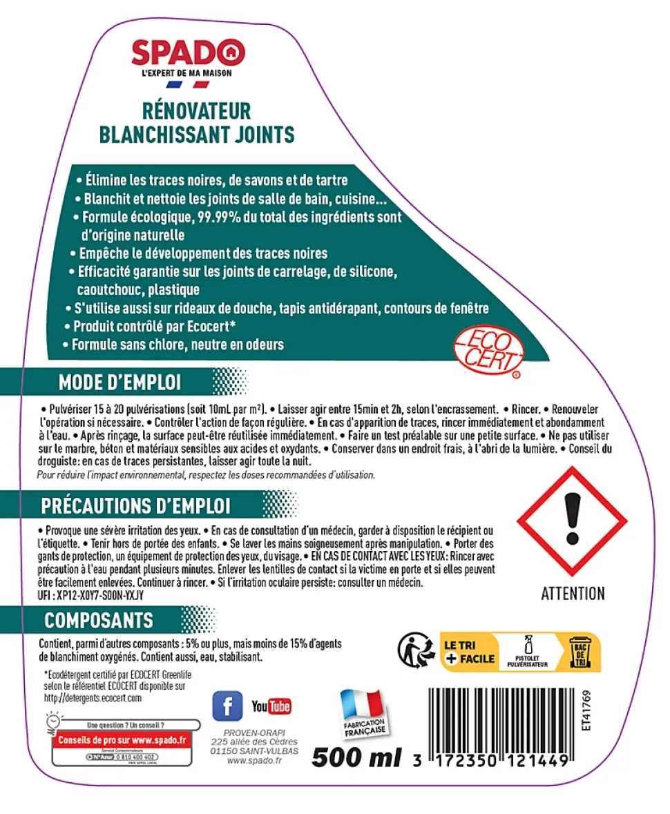 Rénovateur blanchissant joints Ecocert Spado 500ml