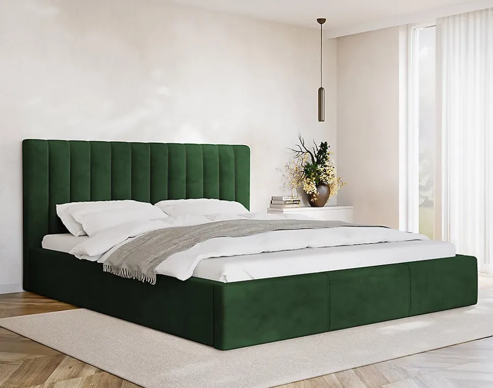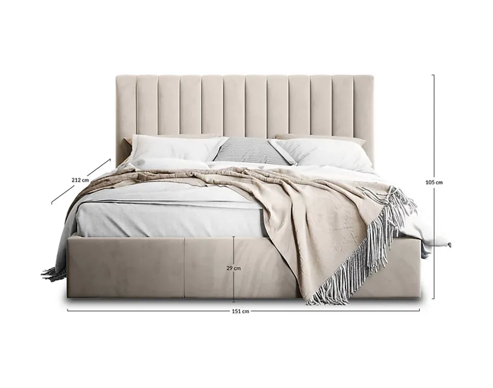 Description technique Style : ContemporainFabrication : EuropéenneType lit : Lit coffreNombre de places : 2Coffre de rangement : OuiStructure : Bois et panneaux de particulesEssence de bois : EpicéaTête de lit : Mousse polyuréthane de densité 23kg/m3Revêtement en velours 100% polyesterSommier inclusPatins en plastiqueA assembler soi-même, notice de montage fournieDimensions :Largeur : 151 cmHauteur : 105 cmProfondeur : 212 cmHauteur d’assise : 29 cmDimensions du couchage : 140×200 cmDimensions des colisColis 1 : 110x10x153 cm / 22 kgColis 2 : 19x205x31 cm / 28 kgColis 3 : 12x202x20 cm / 13 kgEntretienIl est recommandé de nettoyer les salissures légères avec un chiffon légèrement humide. Terminer en essuyant avec un chiffon sec.Bon à savoirPour une meilleure stabilité, resserrez les vis deux semaines après le montage.Les couleurs des produits affichés peuvent varier en fonction de votre écran d’ordinateur ou mobile.Nous faisons de notre mieux pour représenter fidèlement les couleurs de nos produits dans nos images, mais ne pouvons garantir qu’elles soient exactement les mêmes que celles que vous voyez sur votre écran.N’hésitez pas à nous contacter, nous sommes là pour vous aider à prendre une décision d’achat éclairée.Un lit coffre solide, confortable et moderneRésolument contemporain, le lit coffre 140×200 cm Rosario allie parfaitement solidité et confort. Solide grâce à sa structure en bois et panneaux de particules et confortable grâce à sa tête de lit linéaire rembourrée et revêtue de velours doux au toucher.Disponible en 140×200, 160×200 et 180×200 cm ainsi qu’en plusieurs coloris, le lit double Rosario apportera une touche de modernité à votre chambre.Mais également