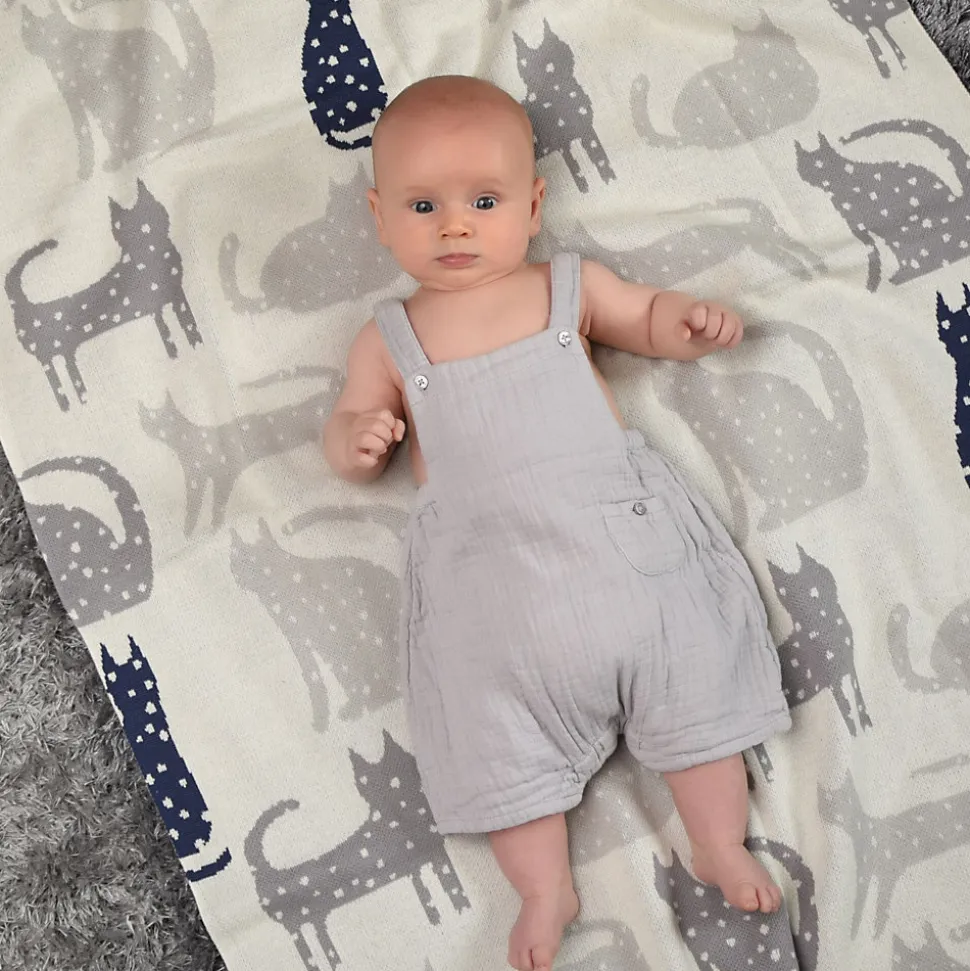 Couverture Bébé en Coton Biologique GOTS avec Motif Chat : Douceur Naturelle pour la Peau Sensible des Nouveaux-nésOffrez à votre bébé un cocon de douceur avec cette couverture en coton biologique certifié GOTS, spécialement conçue pour respecter la peau fragile des nouveau-nés. Fabriquée à partir de matériaux biologiques et éco, cette couverture est le choix idéal pour les parents soucieux du bien-être de leur enfant et de l’.Un Design Adorable et UnisexeAvec ses charmants motifs de chats gris et bleu marine sur un fond écru, cette couverture est à la fois douce et attrayante pour petits et grands. Son design mixte convient aussi bien aux enfants qu’aux enfants, et s’intègre parfaitement dans toutes les chambres d’enfants. Facile à transporter et légère, elle sera parfaite pour accompagner les moments de câlins ou lors de vos sorties avec bébé.Qualité Supérieure et Confort AbsoluConfectionnée en coton biologique de haute qualité, cette couverture offre une régulation naturelle de la température, enveloppant votre bébé dans un cocon de confort. Elle est parfaite pour garder votre enfant au chaud pendant ses siestes ou lors des promenades, tout en offrant une douceur inégalée.Certification GOTS : Sécurité et Responsabilité EnvironnementaleCertifiée par le label GOTS (Global Organic Textile Standard), cette couverture garantit une fabrication et . Elle offre ainsi une sécurité optimale pour la peau sensible de votre bébé tout en contribuant à la préservation de notre planète, un choix éthique pour un avenir durable