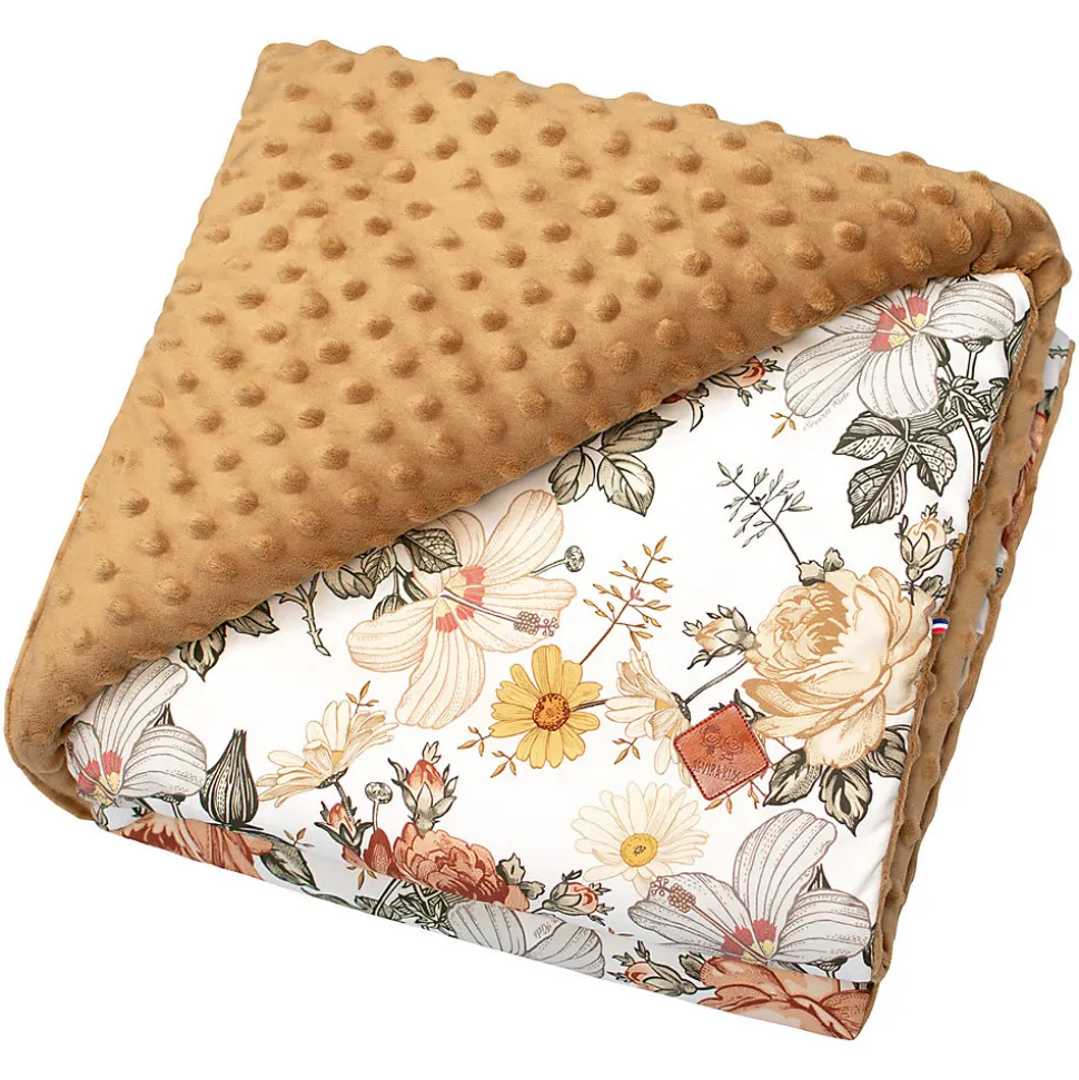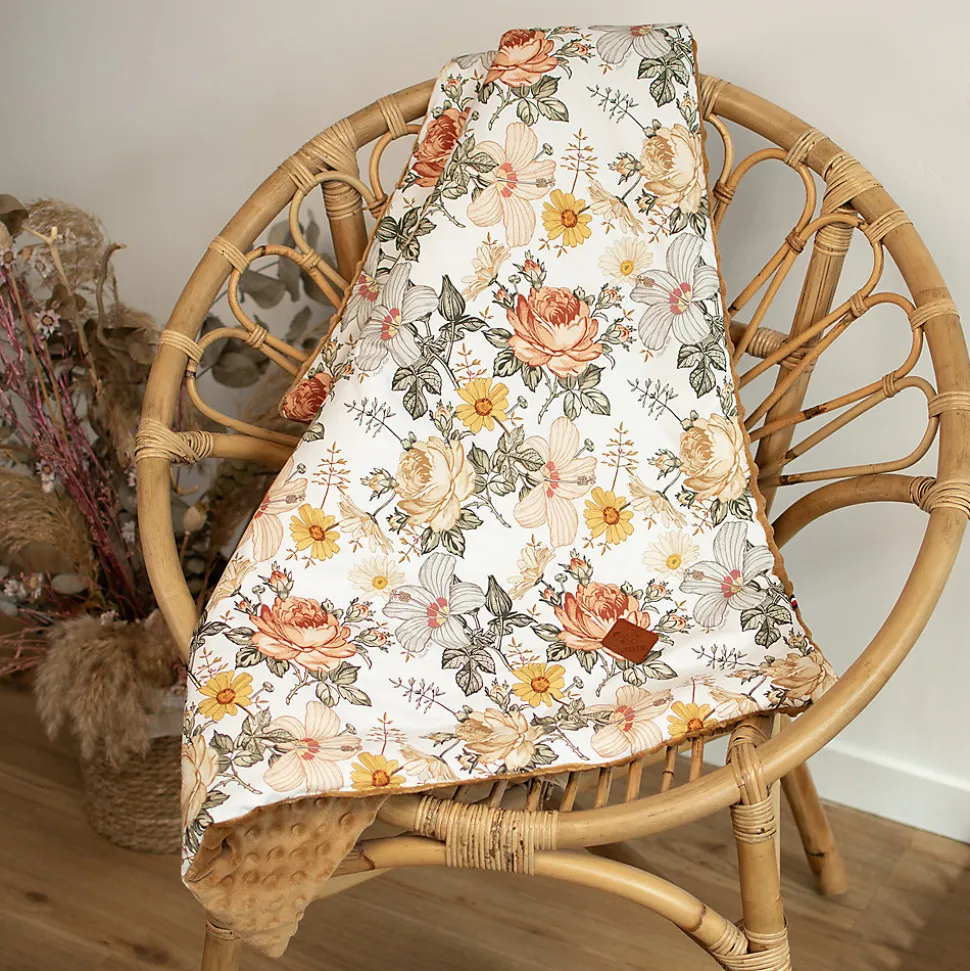 - Douceur réversible : Une face en minky extra-doux couleur camel et une face en coton avec un magnifique imprimé floral rétro chic pour varier les styles.