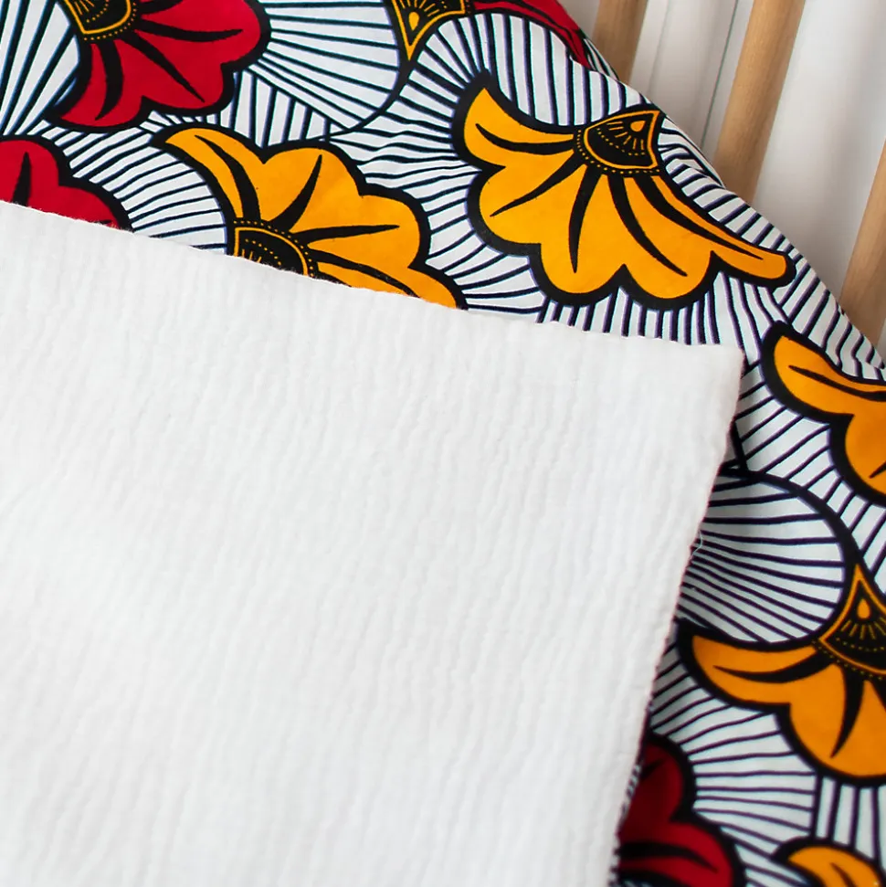 Offrez douceur et originalité à votre enfant avec notre couverture réversible en gaze de coton et tissu Wax. Disponible en 2 tailles, fabrication française signée Sevira Kids.